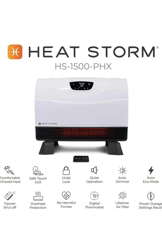 This product is 249$plus taxes on amazon. Heat Storm Phoenix Floor to Wall Infrared Space Heater with Attachable Feet, Remote Control, Energy Efficient-750-1500 Watts This portable 1500 watt infrared heater has the power to heat up a small room or office with its 5200 BTU heat output. Two power modes, one uses the full 1,500 watt power while the other only uses 750 watts. Our patented heat exchanger with HMS Technology combines with humidity in the room to provide soft, safe heat without reducing oxygen or humidity. Safe to touch, even the grill. Small convenient size makes this perfect for any room in the house. Hang it on the wall or set it on the ground thanks to removable feet and wall mounting points on the back of the heater. Built in thermostat with LED display shows you what the ambient temperature is and helps regulate the temperature efficiently. Included remote control allows you to control the temperature with ease. This heater comes with a 1 year manufacturer warranty 1500 WATTS of power and 5200 BTU. As a primary heat source: (Up to 150 sq. ft of zone heating (in a well-insulated room). As a supplemental heat source: (Up to 750 sq. ft of zone heating depending on room insulation)