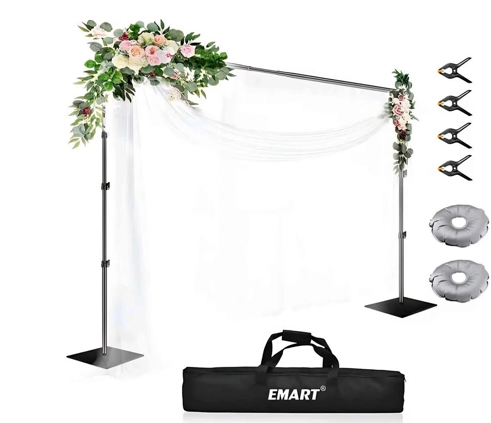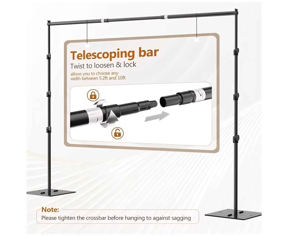 Heavy Flat Base. The base is made of high-quality iron, with a large contact area and enough weight for stable support. Retractable Crossbar. The telescopic design makes the width of the cross bar freely adjustable, adapting to backdrops of different sizes. Refer to the product manual for specific dimensions and installation. Maximum height 77" inches. Maximum width 62" inches. Suitable for wedding, reception, birthday party, baby shower, photography, studio, banner frame background, business activities and many other occasions. Pick it up Niagara Falls