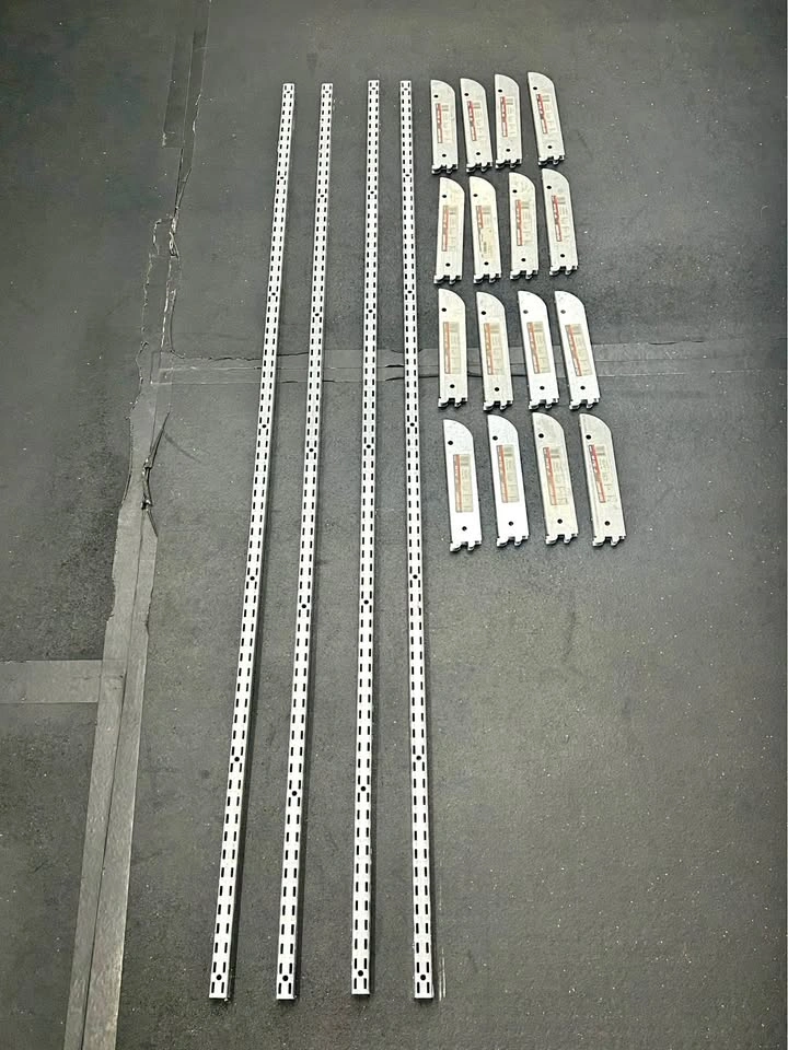 Retails for $290 for all the components. (x4) 72” (6 foot) - Tall heavy duty shelf vertical support bars made of heavy duty galvanized steel. (x16) 10” - Brackets - Double walled, rated for loads up to 150 pounds (68kg) PER bracket. Great for modular shelves, lumber storage, garage or workshop organization.