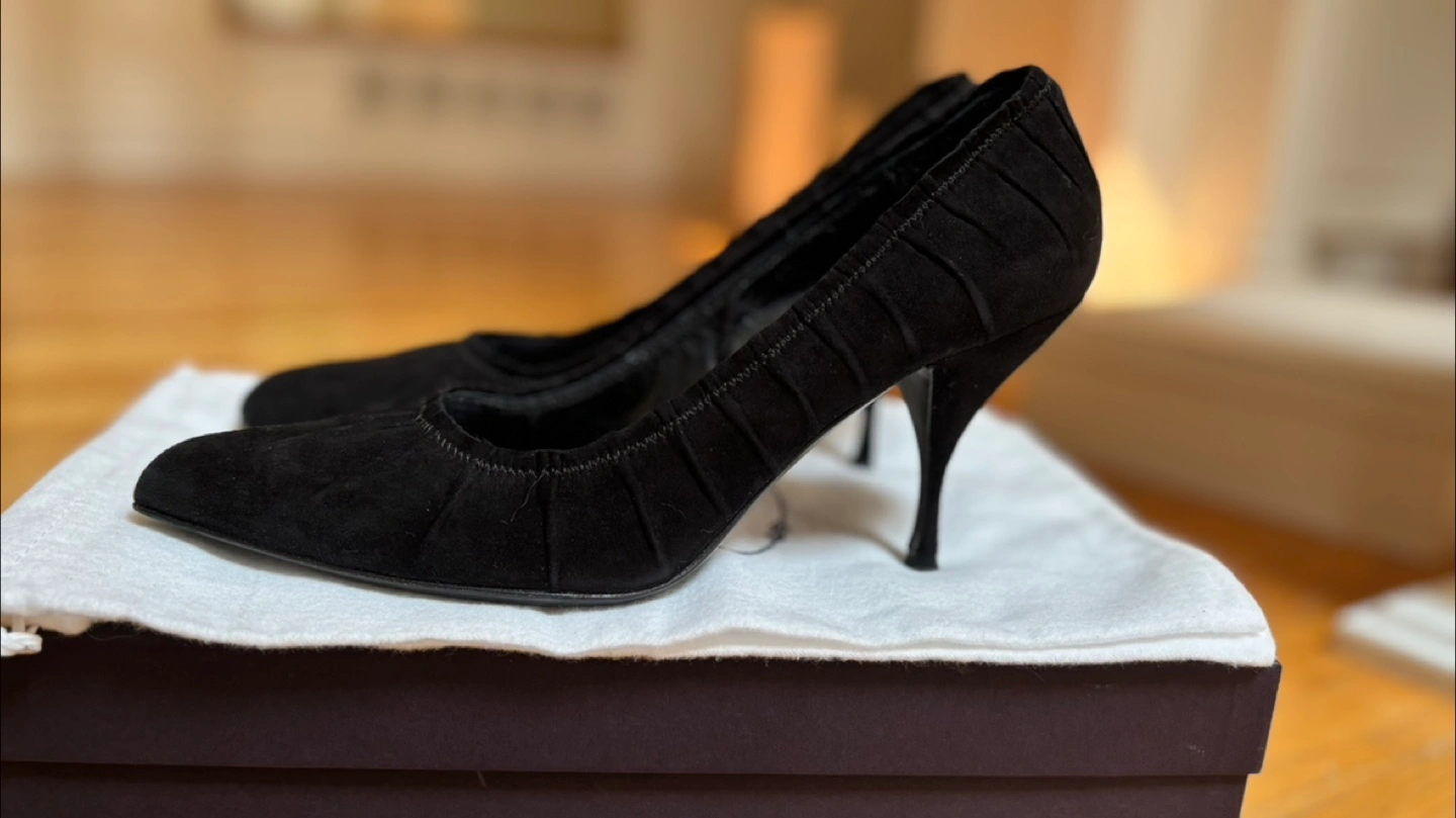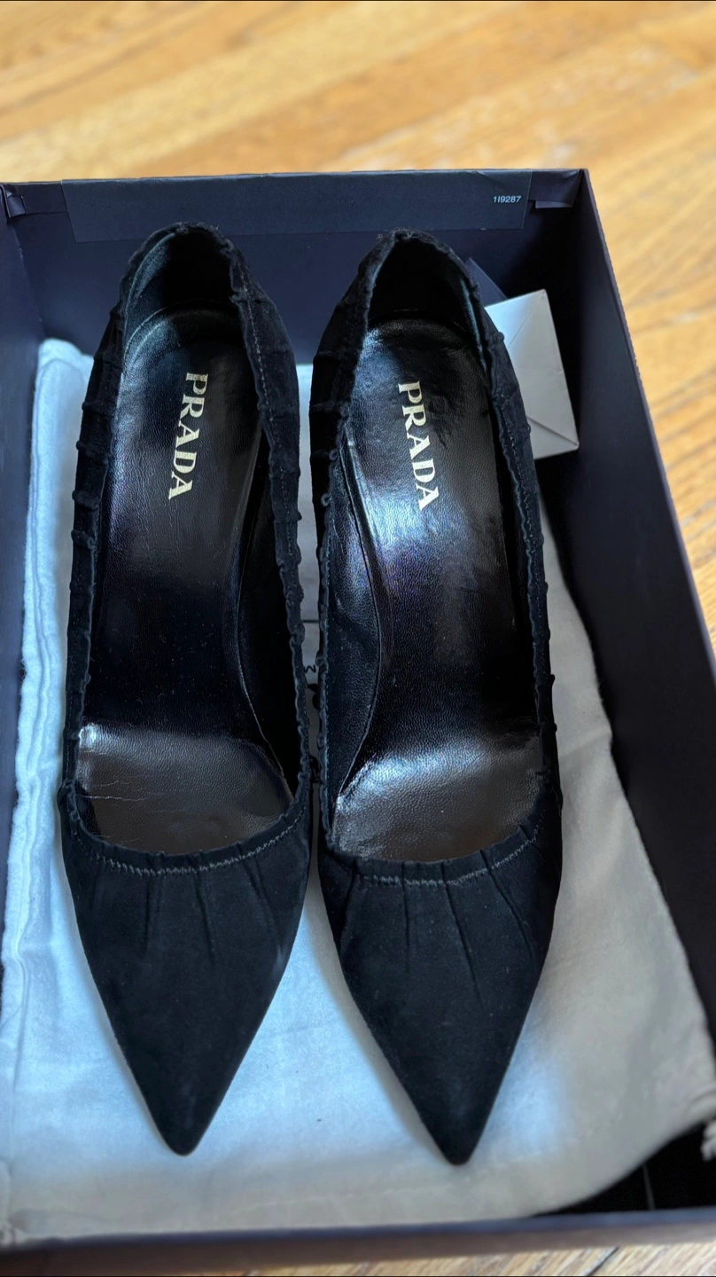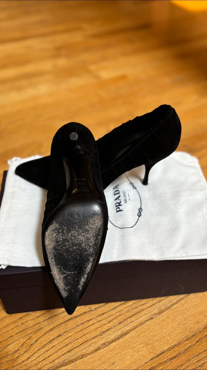 Black heels with extra heel rubber and dust bag included and box.