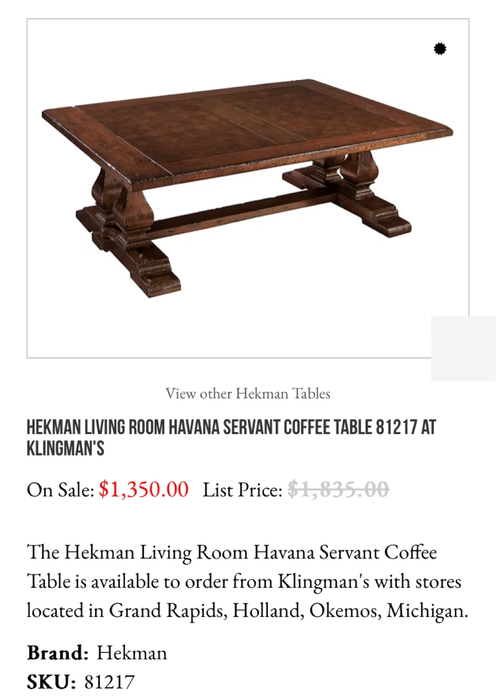 Show allHekman Havana Servant Coffee Table - Solid Wood