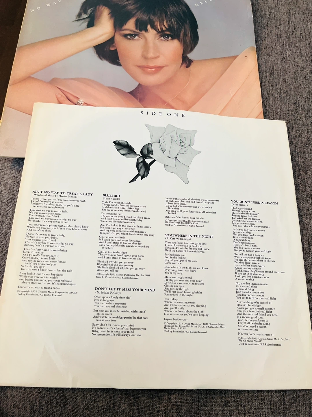 Selling a Helen Reddy vinyl record, "No Way To Treat A Lady"! The record and cover show some wear, but it's still in good condition for listening