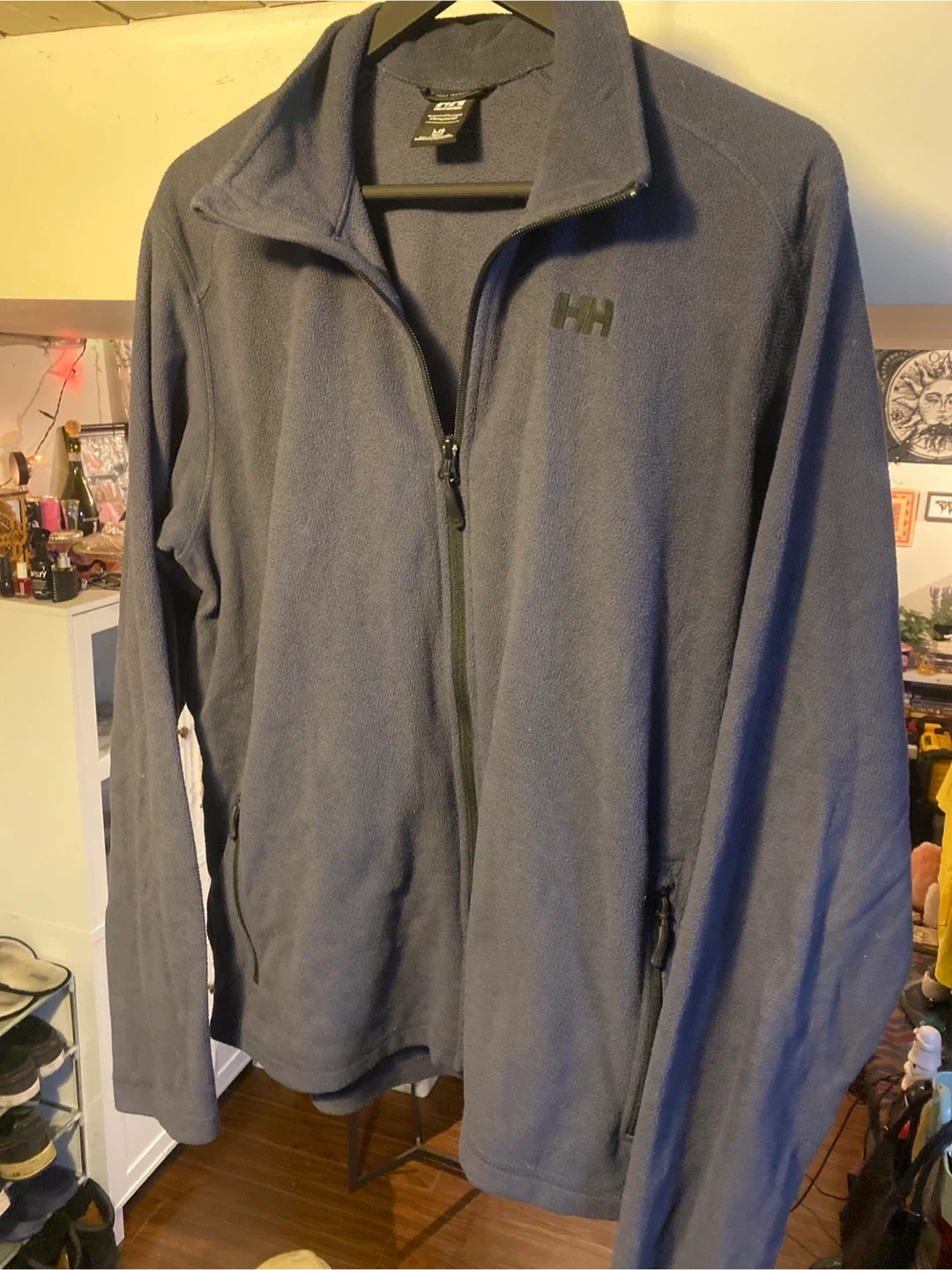 Cozy Helly Hansen fleece jacket in size large! It's in great shape and ready for a new home. Perfect for layering during those chilly Canadian days