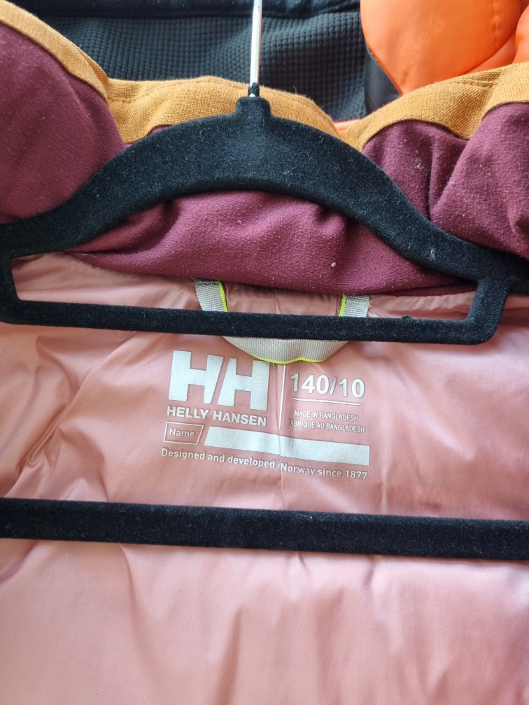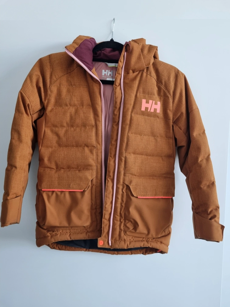 Helly Hansen padded jacket, perfect for keeping warm. It's a size 140/10, which is great for kids. The jacket is a stylish brown colour with some nice accents.