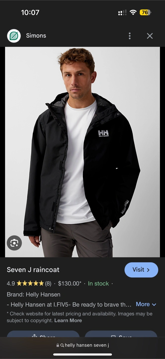 Selling a brand new Helly Hansen Seven J raincoat size Large in black. Still has tags on. It's a great jacket for braving the elements! Retails for $130 +tax. Asking $120. Size Large Black