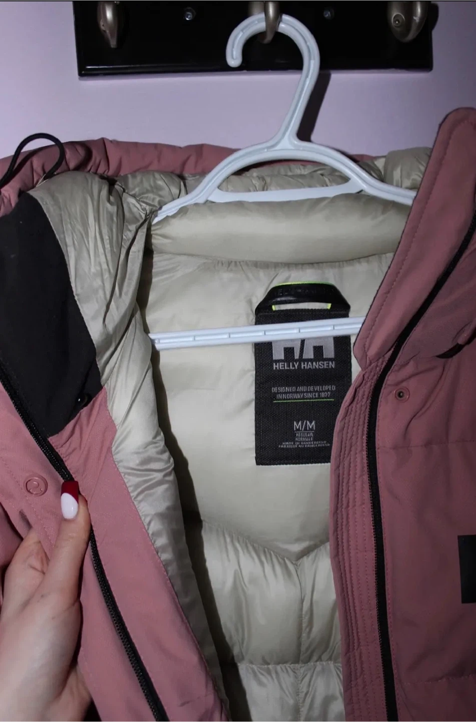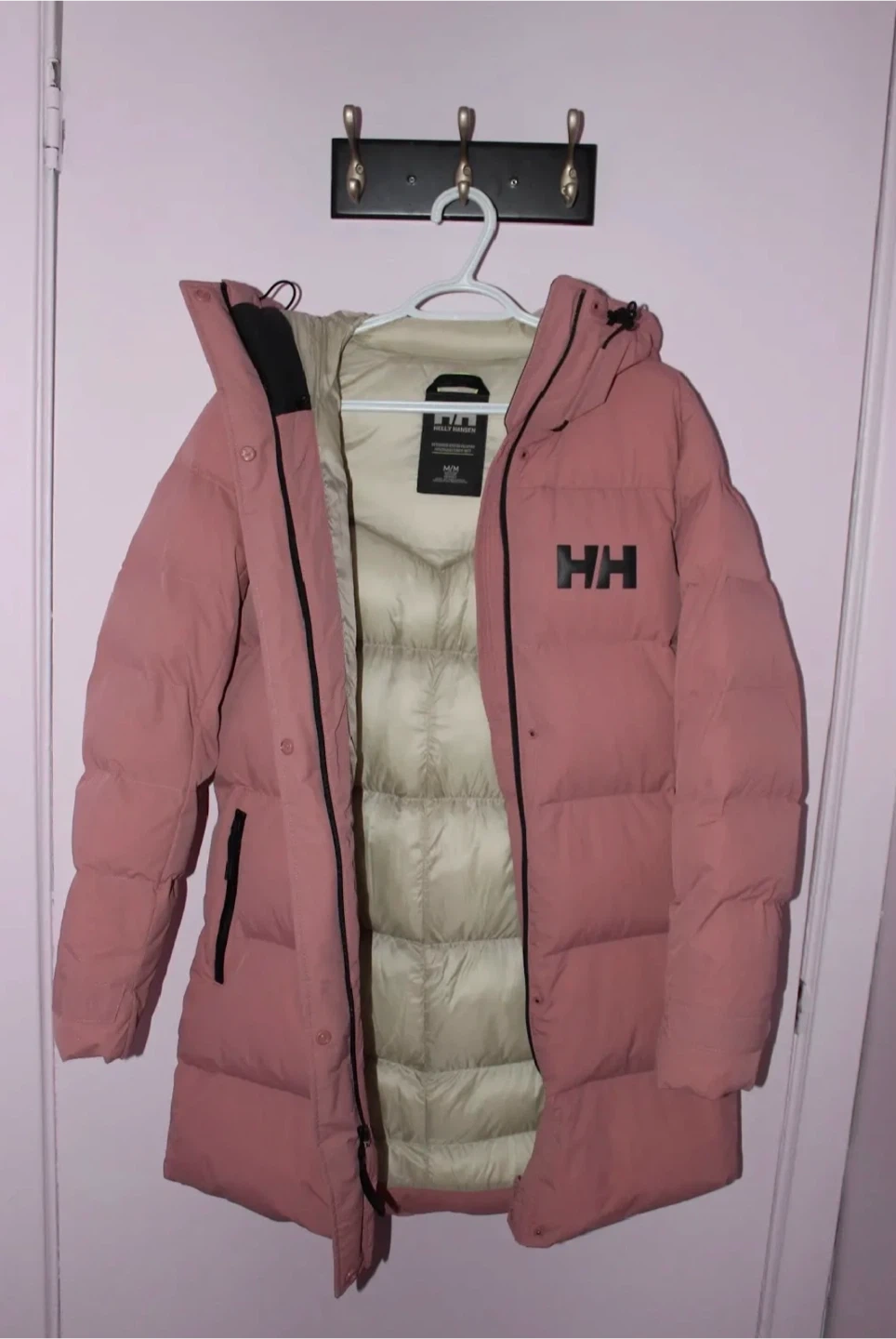 Selling a Helly Hansen W Adore Puffy Manicaeu VIII parka in size medium! The colour is a baby pink. It also features a fold-up reflective detail. Perfect for staying warm and stylish this winter season!