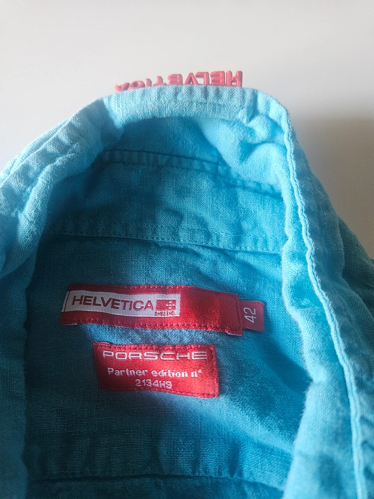 Selling a Helvetica Porsche Edition II shirt in size 42. It's a stylish and comfortable shirt, perfect for casual wear. The shirt is in good condition and ready for a new home!