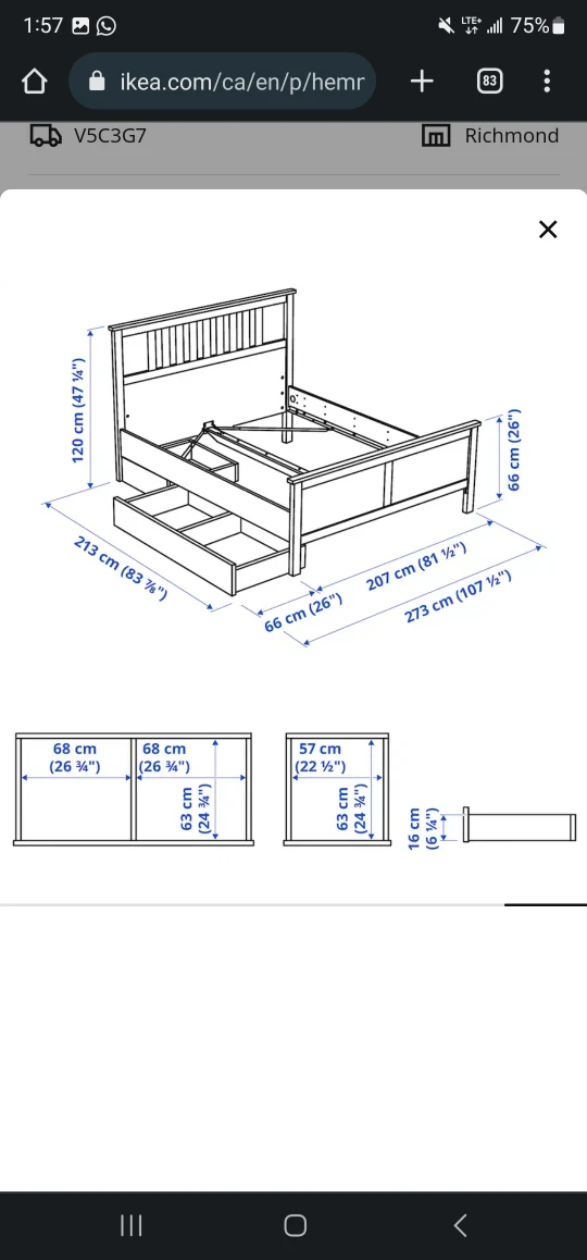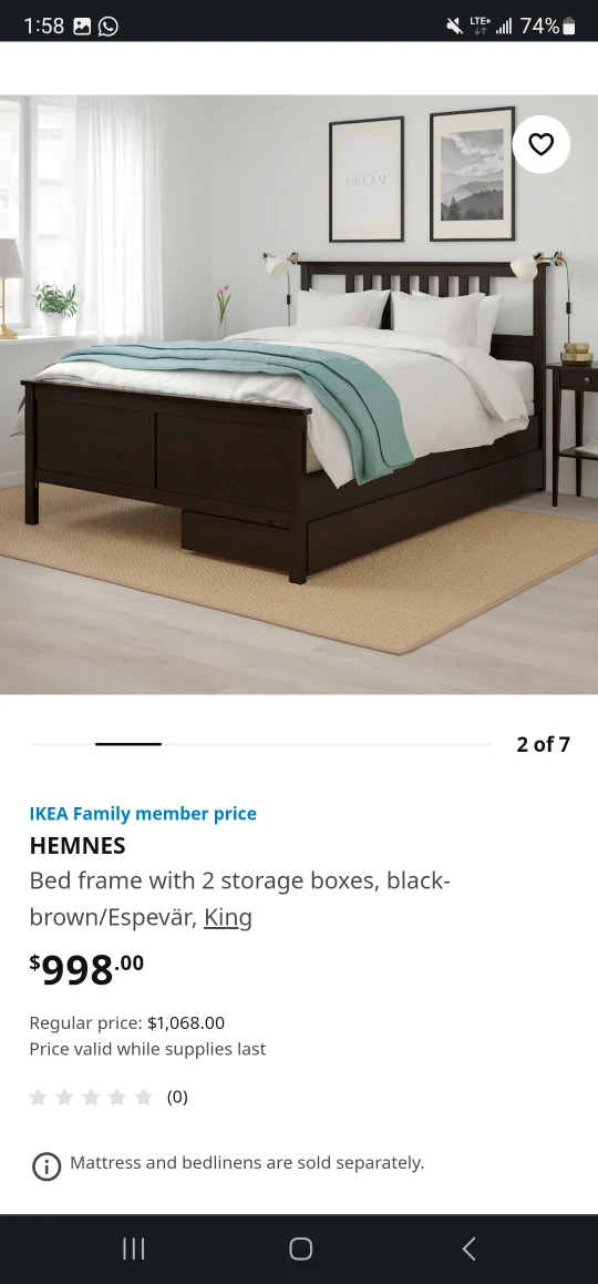 Hemnes King Size Bed Frame with storage