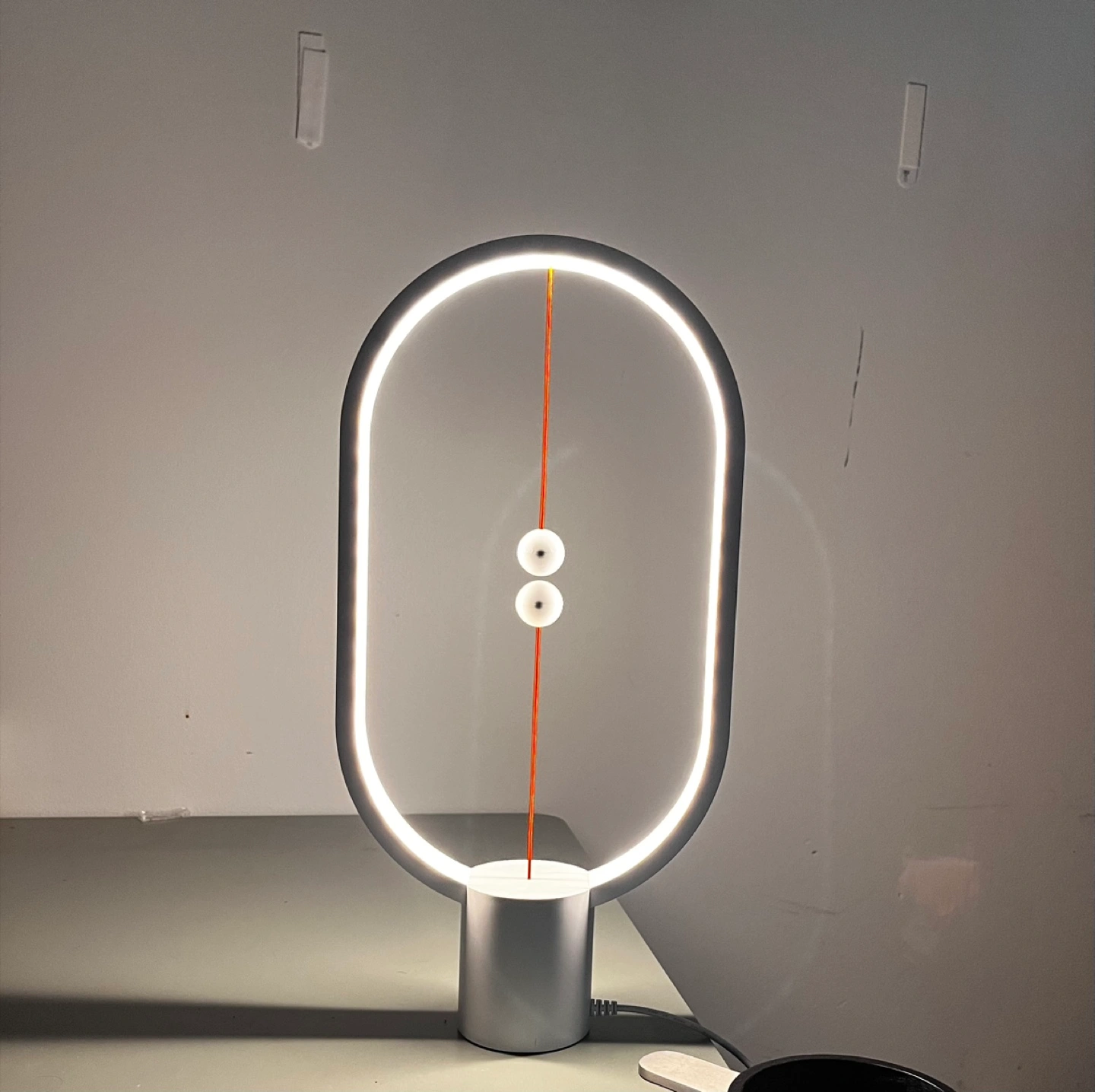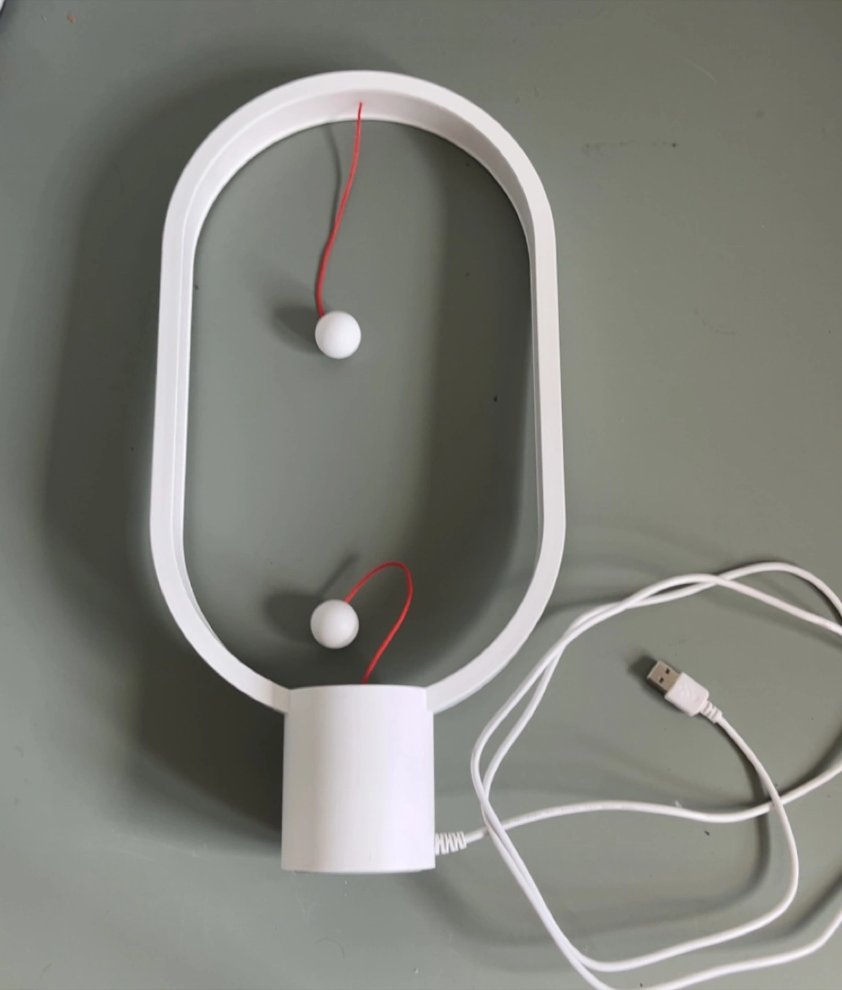Heng Balance Lamp; It's a unique lamp that uses magnetic balls to turn on its light, USB plugin. It's in great shape and would look awesome on a desk or nightstand!