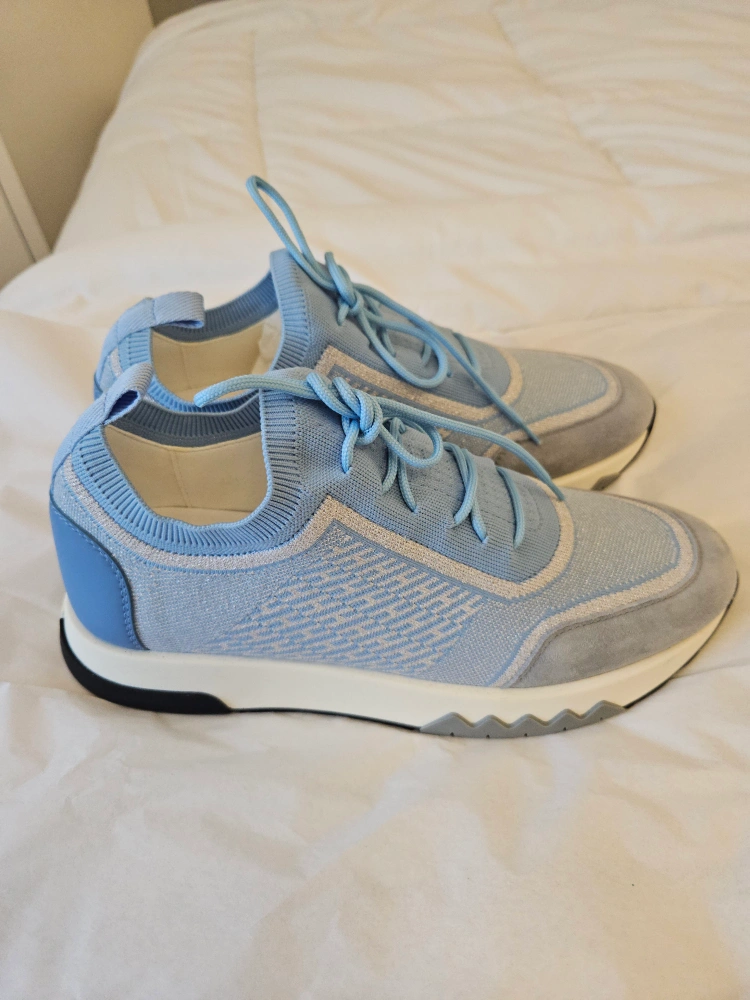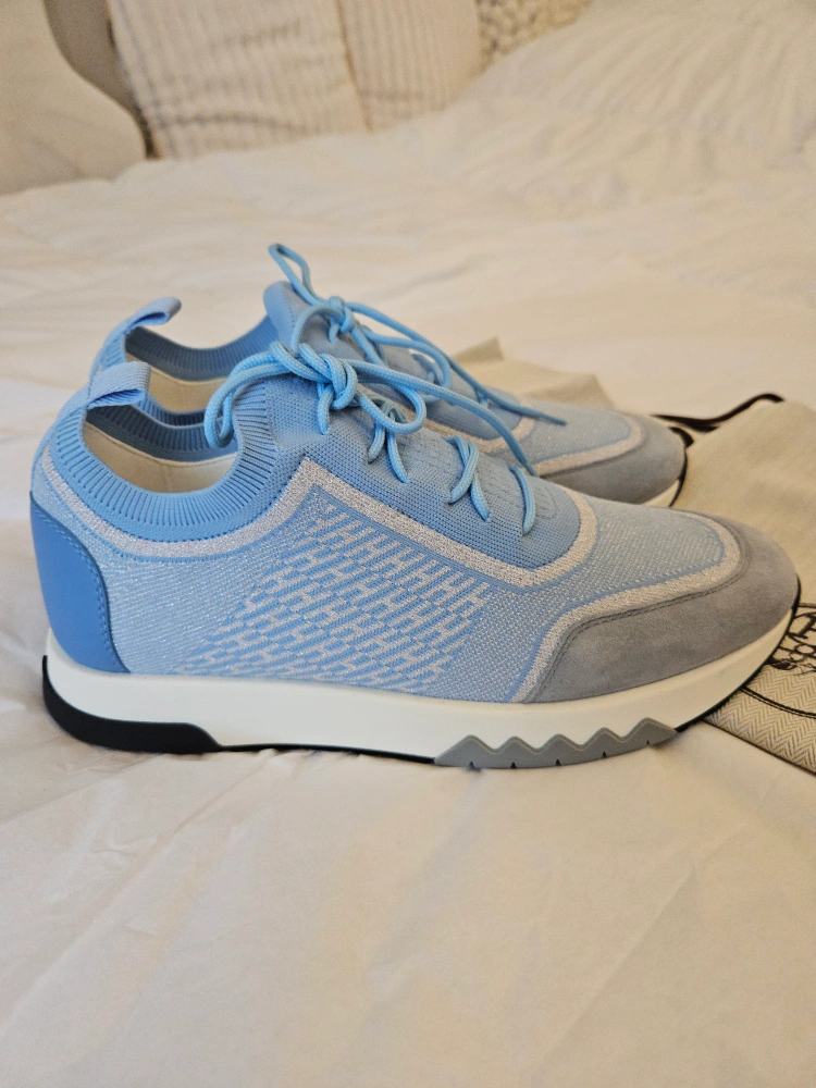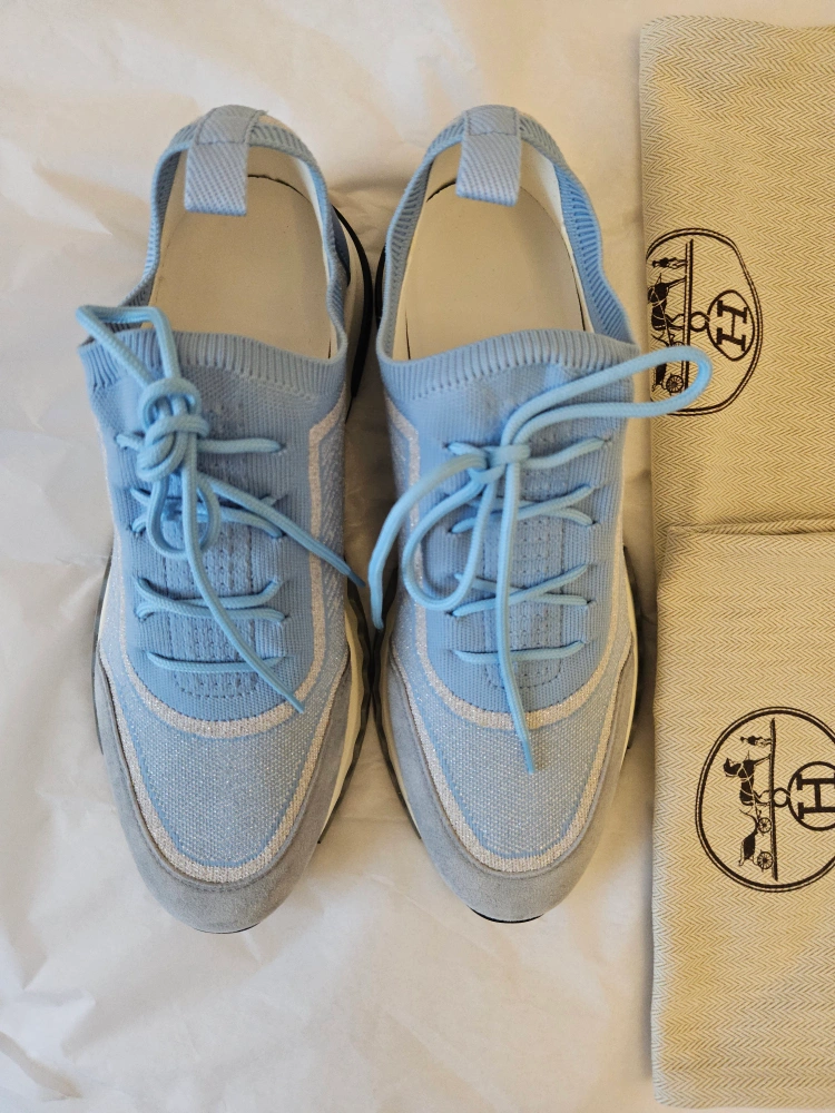 Selling a pair of Hermès Découverte sneakers in a beautiful light blue. These are a size 39 and come with the original dust bag. They are in excellent condition, ready for a new home!