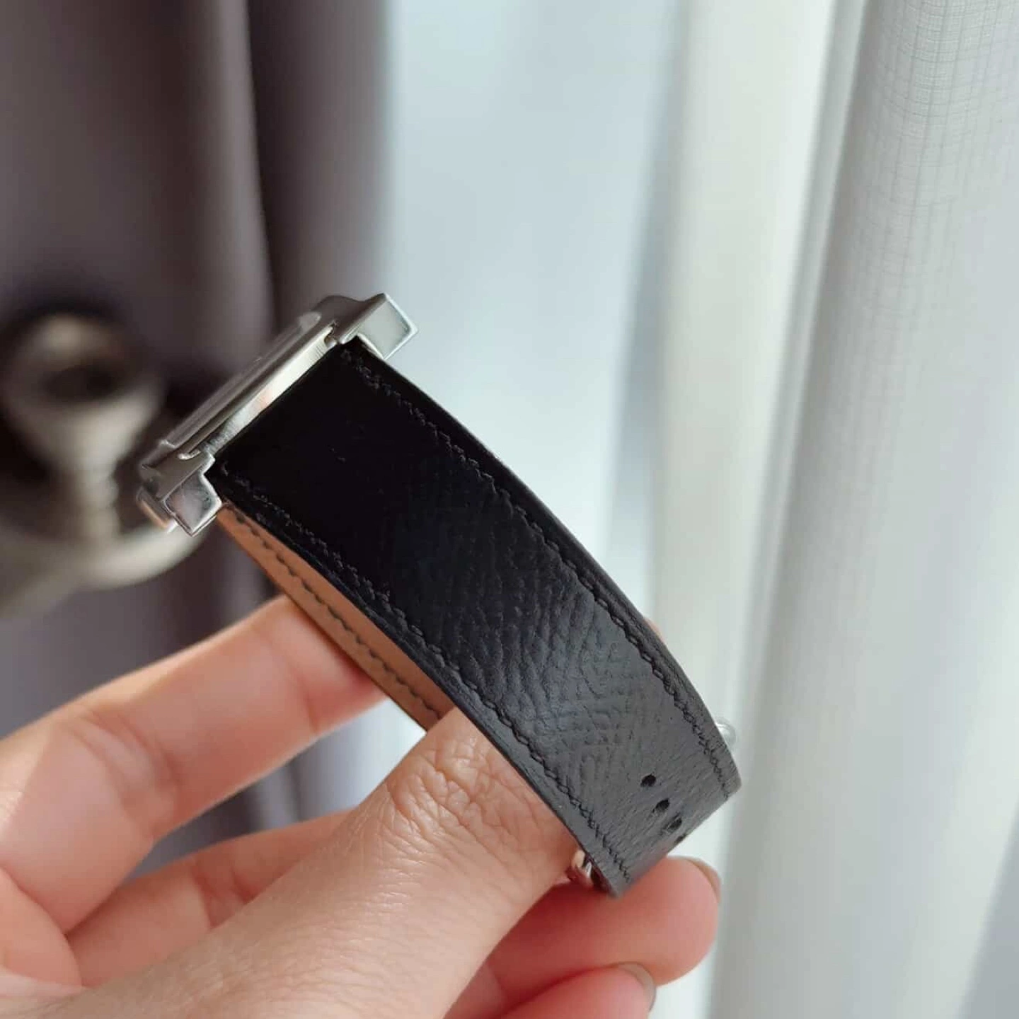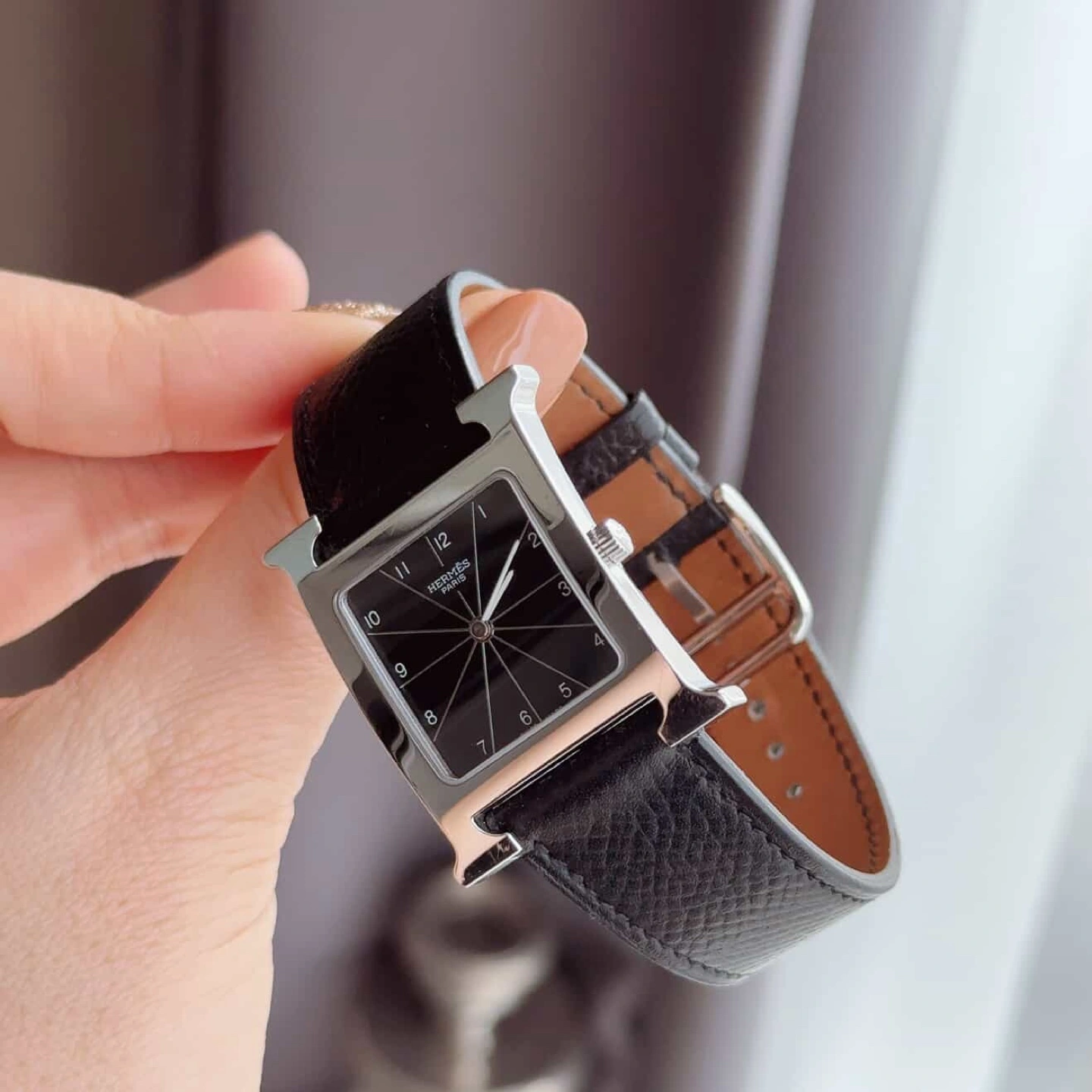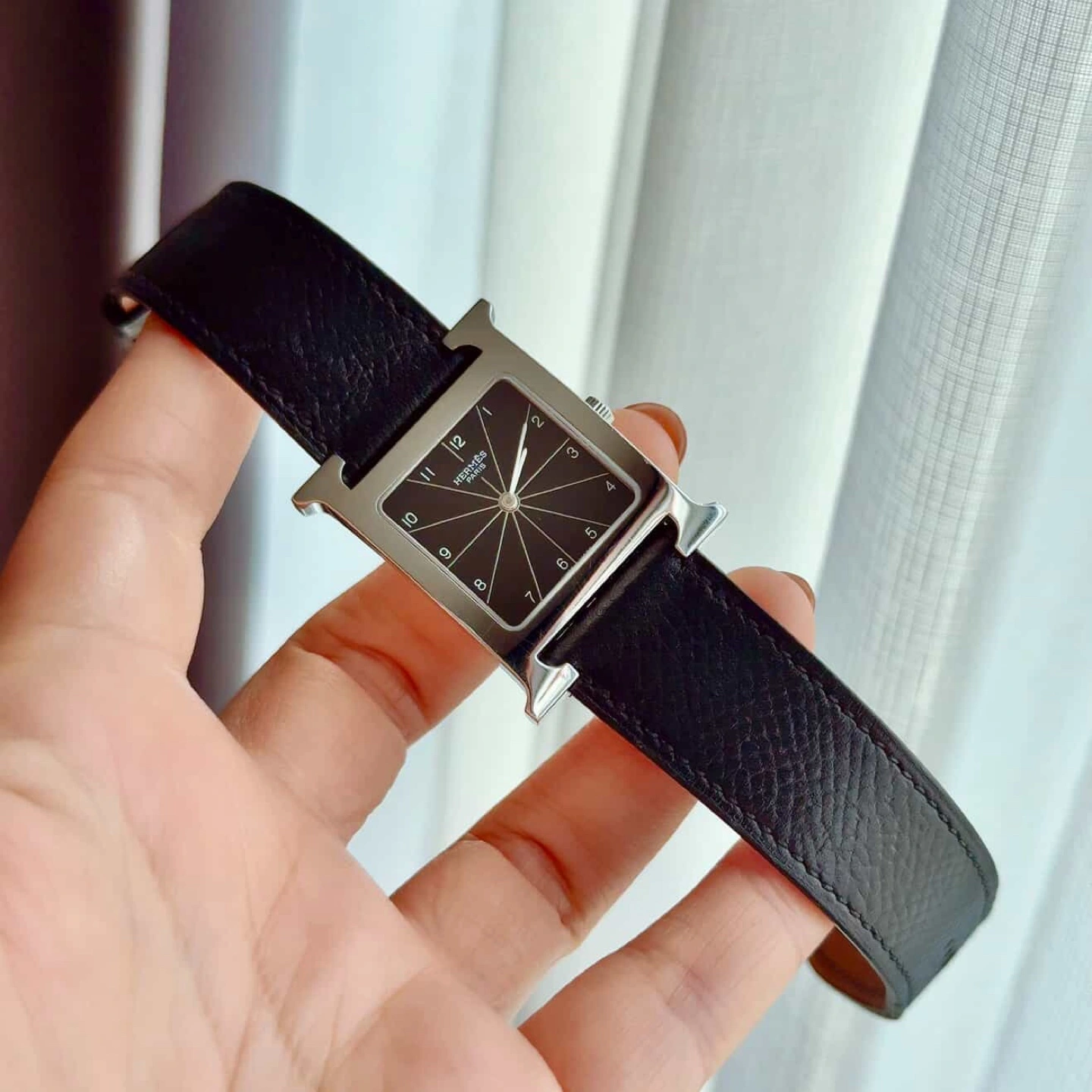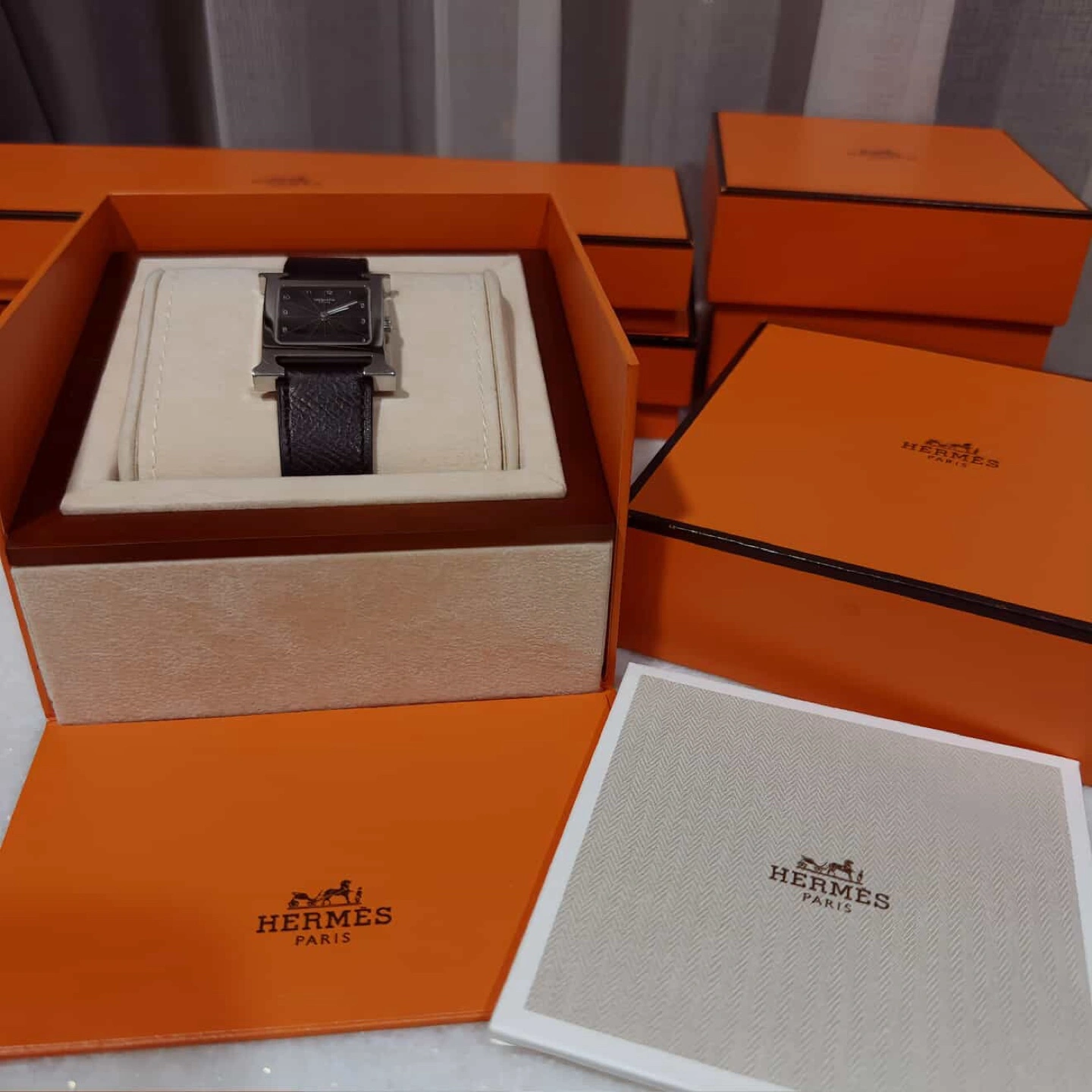 Selling a beautiful Hermès Heure H watch! It features a sleek black leather strap and comes with its original box and papers. A classic and timeless piece!