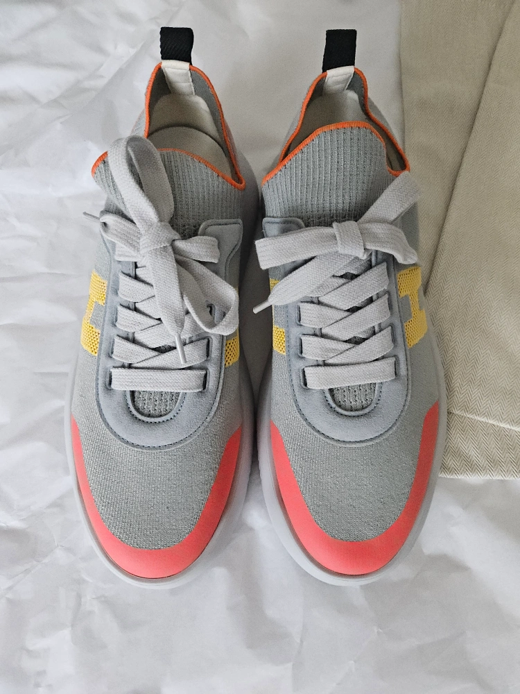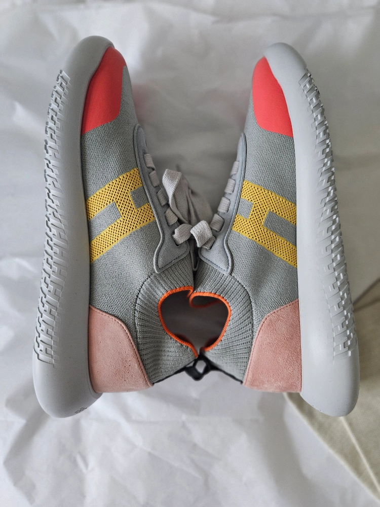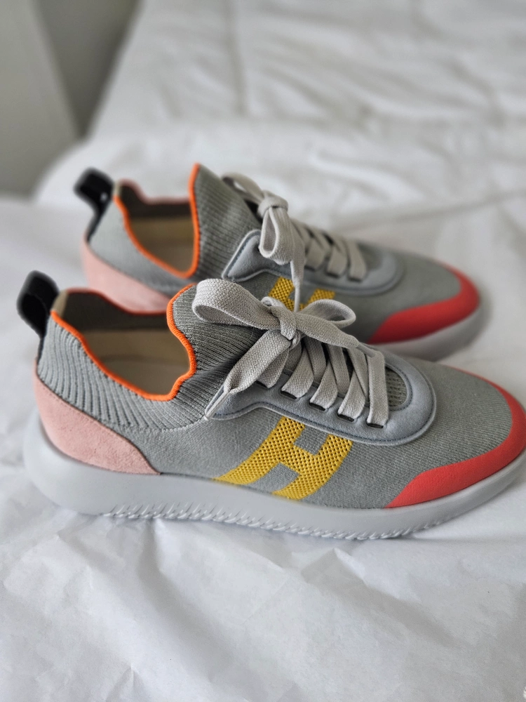 Selling a pair of Hermès sneakers in a stylish grey and pink colourway! They're in great condition and ready for a new home. These sneakers feature a unique design with the Hermès logo subtly incorporated. Perfect for adding a touch of luxury to your casual outfits All items are final sale