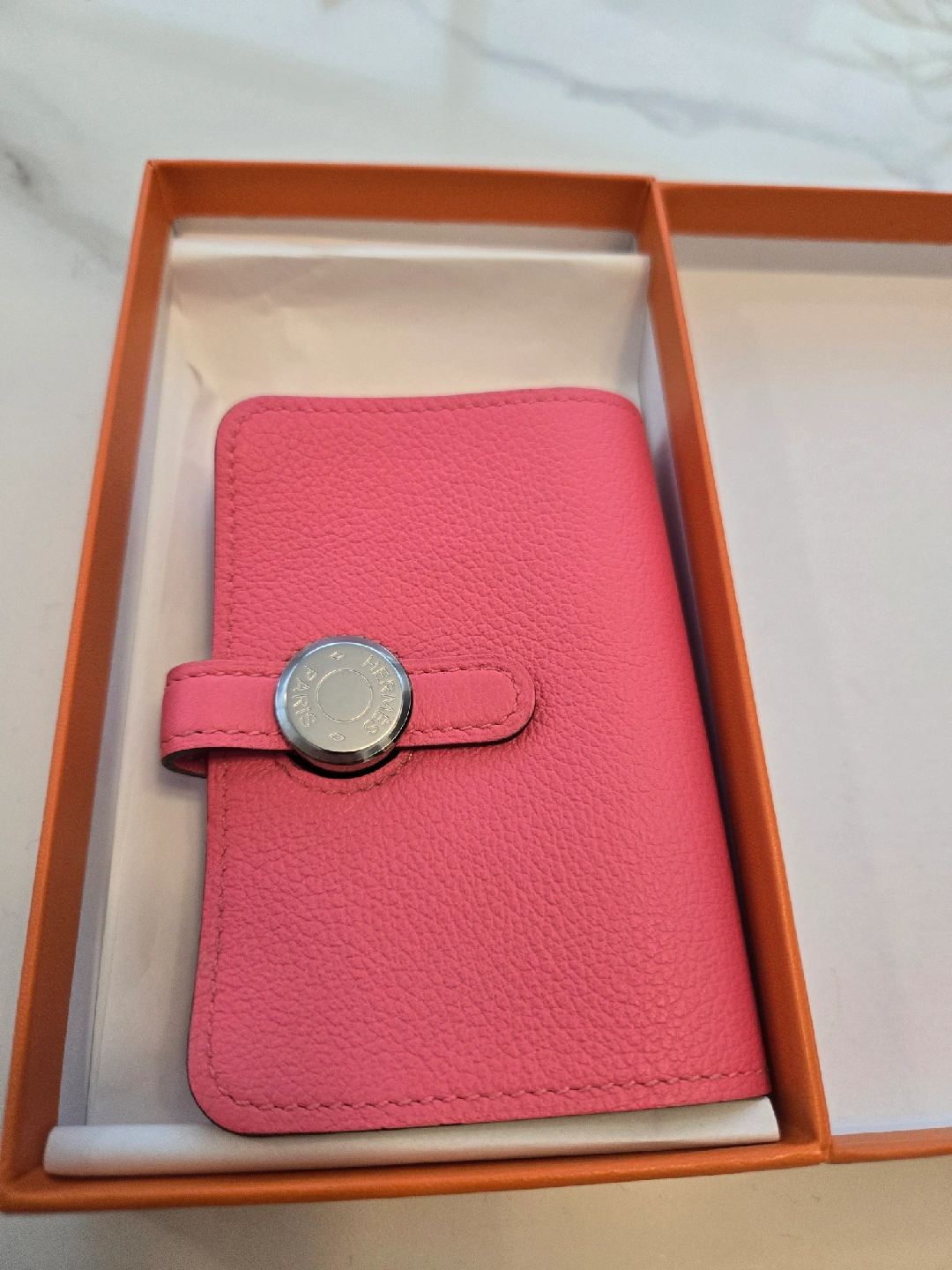 Selling almost new Hermes Dogon EV card holder in the lovely Rose Azalee colour! It's barely been used and comes with its original box. The receipt shows it originally retailed for $1375. It's a beautiful and compact accessory!