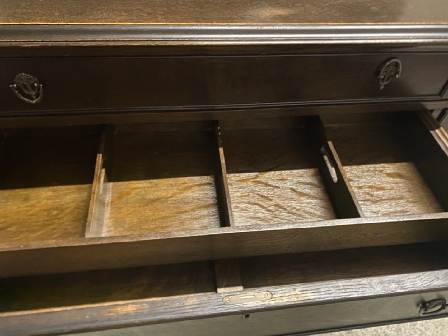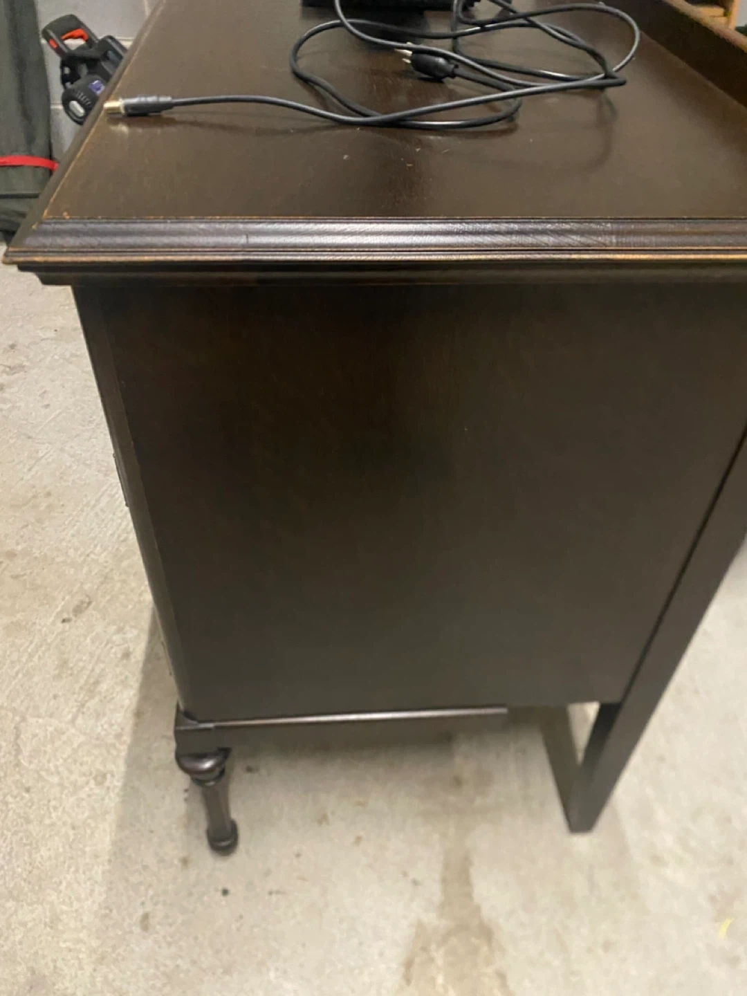 Antique Hespeler side table made prior to 1940 This is very well Canadian made and only needs a minor refinish to the top or it does display beautifully just the way it is. 22 inches deep X 63 long and 3 feet high