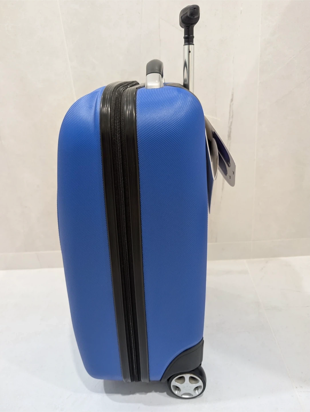 Selling a blue Heys Xcase carry-on luggage. It's lightweight, made from 100% polycarbonate composite. The luggage is 21 inches and weighs about 6.3 lbs (2.9 kg). Perfect for your next trip!
