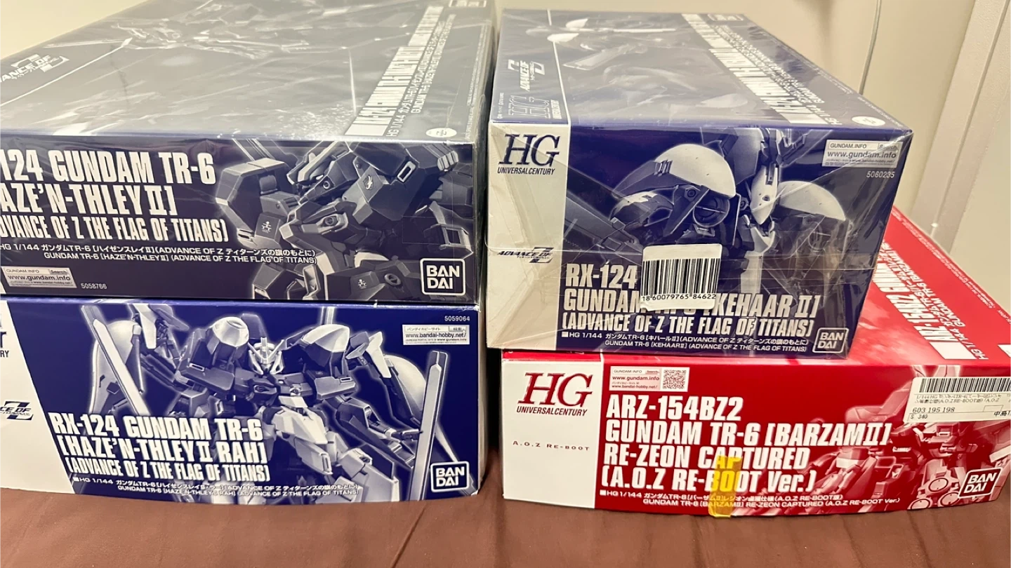 Selling a few High Grade (HG) 1/144 scale Gundam TR-6 model kits from the Advance of Z: The Flag of Titans series! All kits are brand new and still sealed in their boxes. Perfect for Gundam enthusiasts and model builders! Available kits: - RX-124 Gundam TR-6 [HAZE'N-THLEY II] - RX-124 Gundam TR-6 [HAZE'N-THLEY II RAHI] - RX-124 Gundam TR-6 [KEHAAR II] - ARZ-154BZ2 Gundam TR-6 (BARZAMI) RE-ZEON CAPTURED (A.O.Z RE-BOOT Ver.)