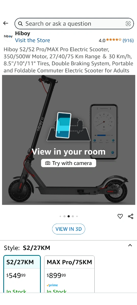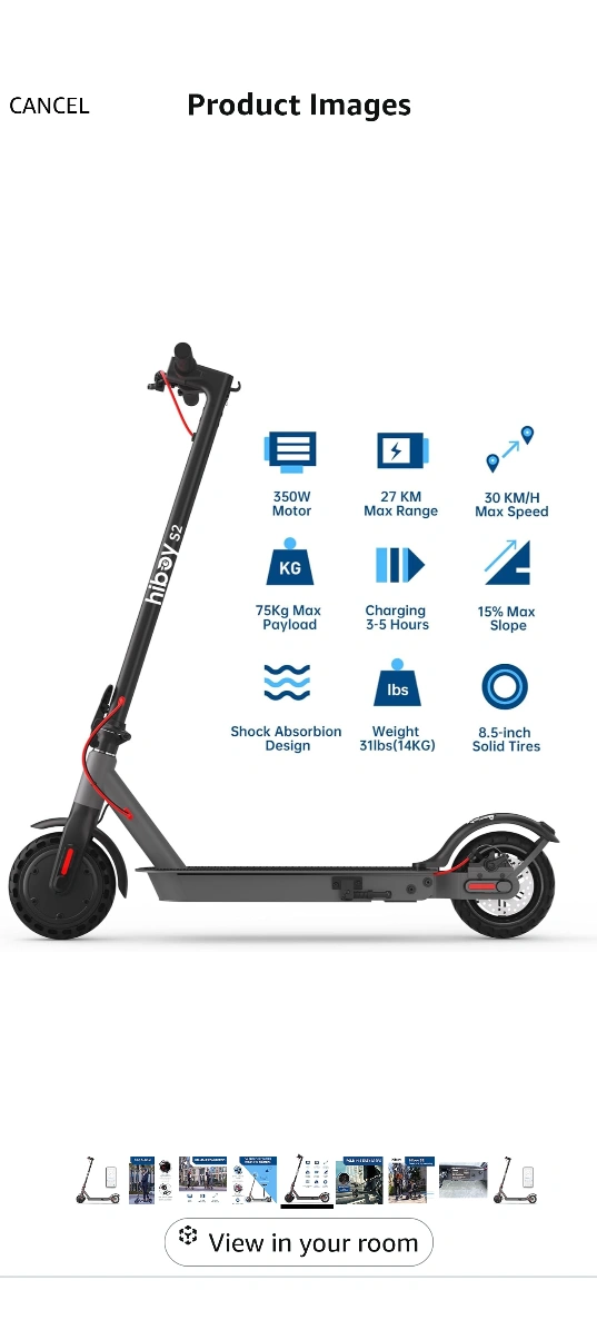 Brand Hiboy used few times around the house . S2 Pro Age range (description)Adult Special featureFoldable Weight limit220 Pounds Product Dimensions114.3L x 40.6W x 119.4H Centimetres Powerful Motor & Long Battery Life The 500W electric brushless hub motor allows for speeds up to 19mph. High capacity battery (36V/11.6AH) with a Max travel range of up to 25.6 miles under specific conditions, and max load of 220 lbs. Upgrade Your Commuting Hiboy S2 Pro electric scooters front and rear wheel equipped with 10-inch solid tires and rear dual shock absorbers provide max comfort, even on rough surfaces or speed bumps. Safety with Hiboy Scooter Hiboy e-scooter features the ultra-bright headlights with a range of up to 15 meters to enhance safety. And double braking system features a disc braking and eABS regenerative anti-lock braking. Perfect for Commute and Travel Hiboy e-scooter collapses for easy storage in car trunks and other compact spaces. Extra detachable scooters seat is available for a more comfortable option. (Seat NOT included) Hiboy S2 App Simply connect Hiboy electric scooter's app to lock your scooter, to customize the scooter acceleration and braking responses.