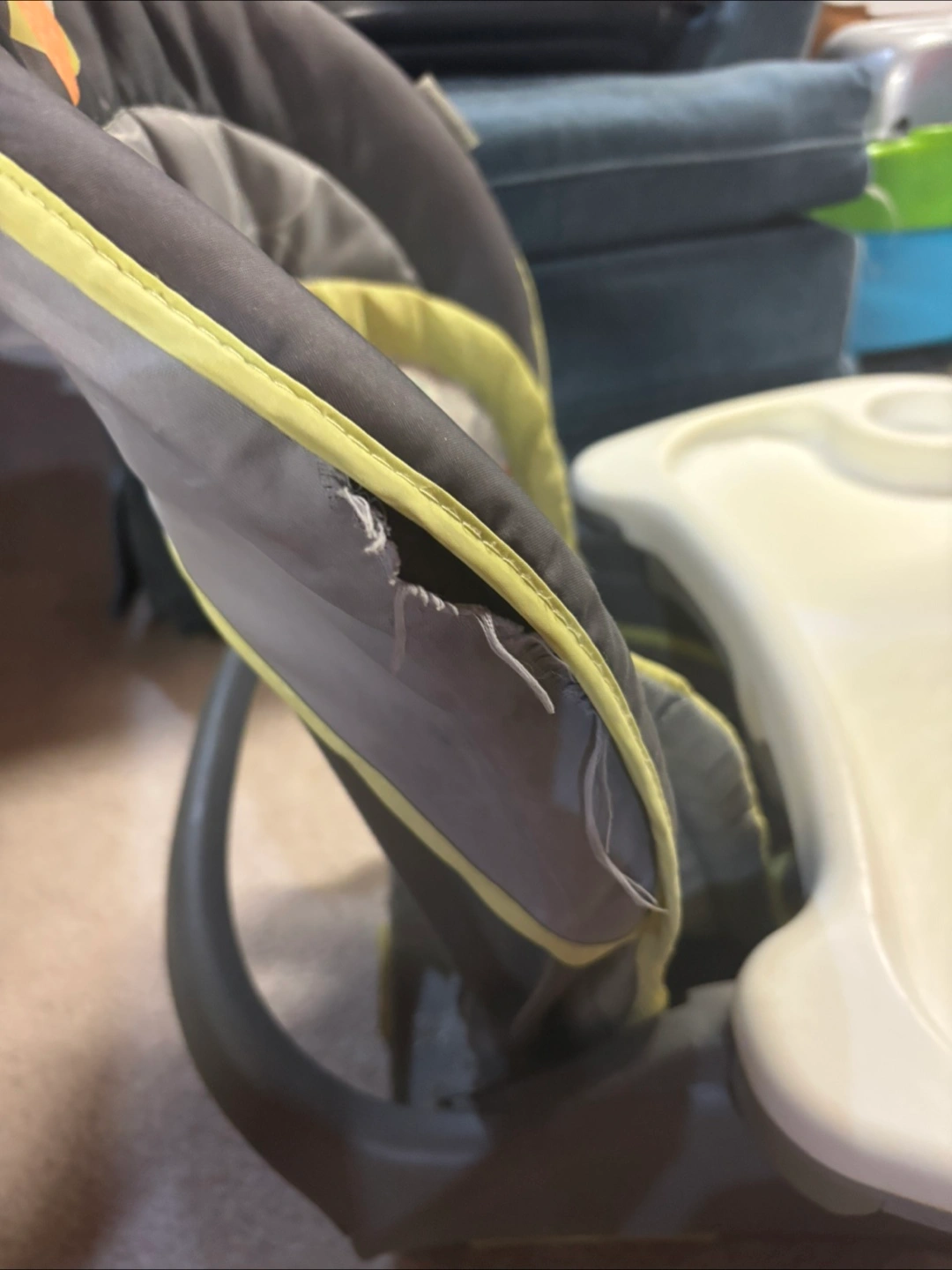 Ingenuity 3in1 Highchair, legs removed for transport, small tear in fabric as shown in picture