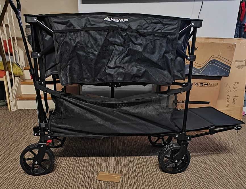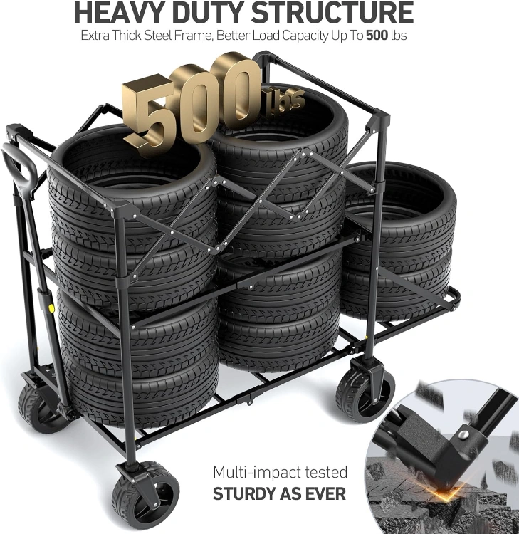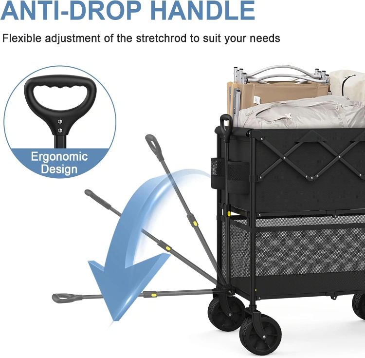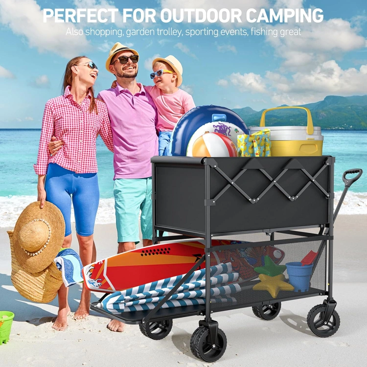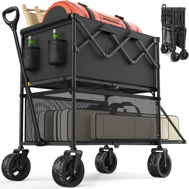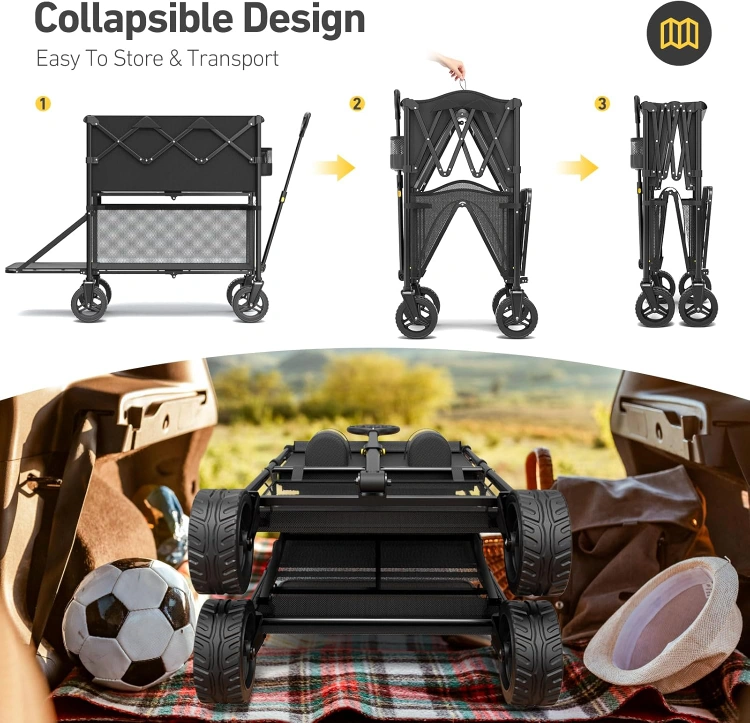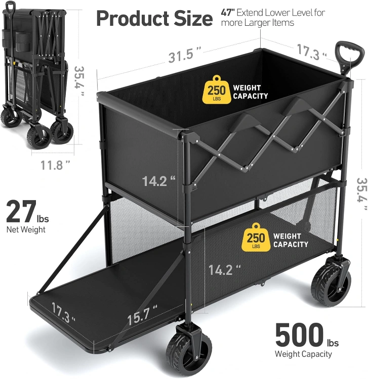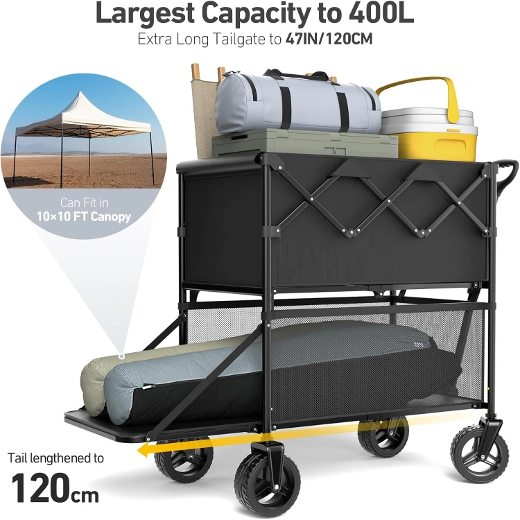 400L Folding Double Decker Wagon, 47" Extra Long Extender Wagon Cart, 500lbs Heavy Duty Collapsible Wagon, All-Terrain Big Wheels for Camping Sports Shopping, Black