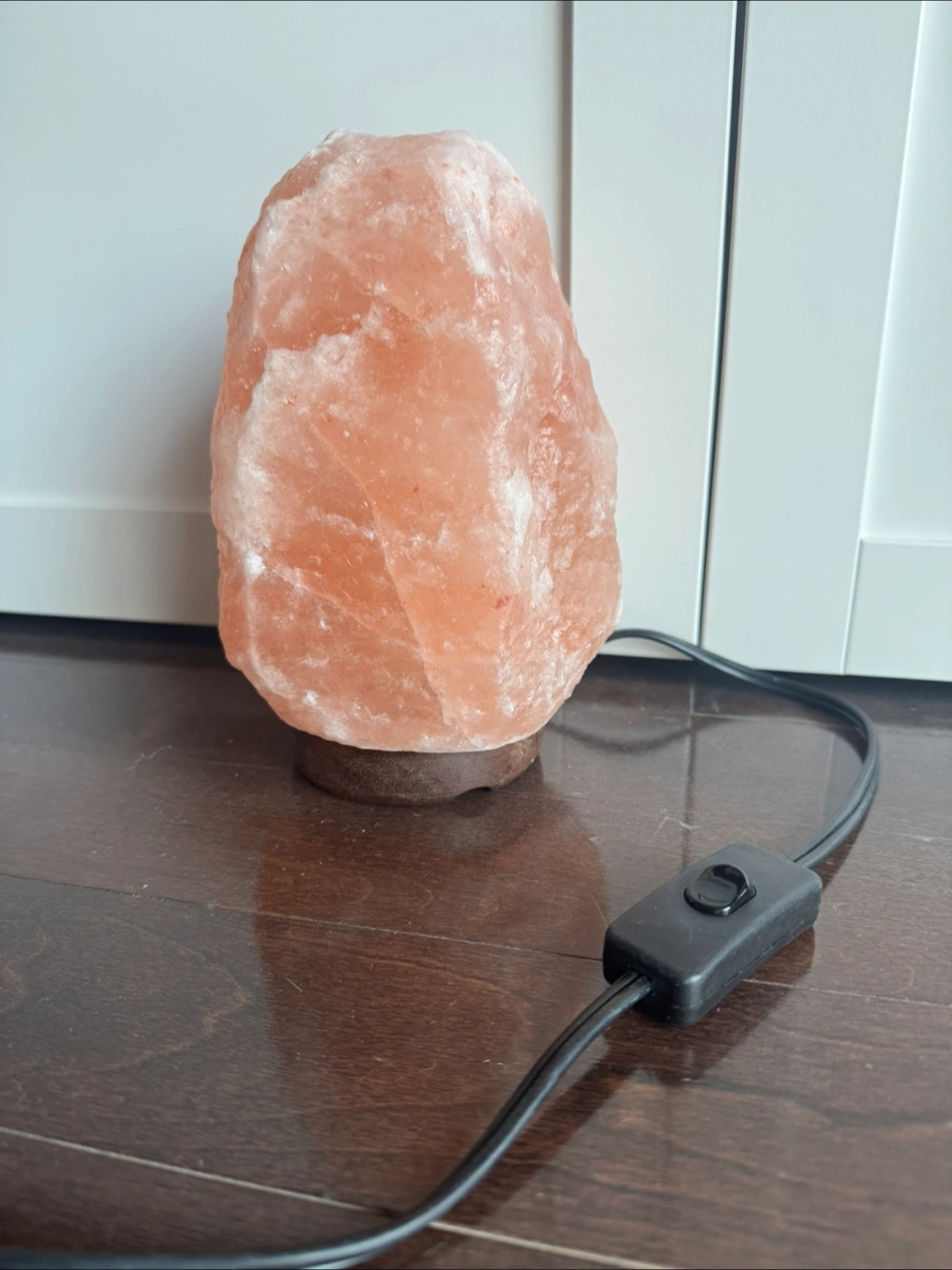 Beautiful pink salt lamp. Sits on a wooden base. Includes a power cord with a switch. Almost 8” tall. Pickup @ Richmond/Spadina