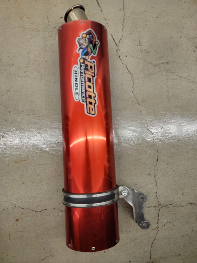 Selling a Hindle Performance Picotte exhaust in a vibrant red colour. It's in good condition and ready to boost your ride's performance!