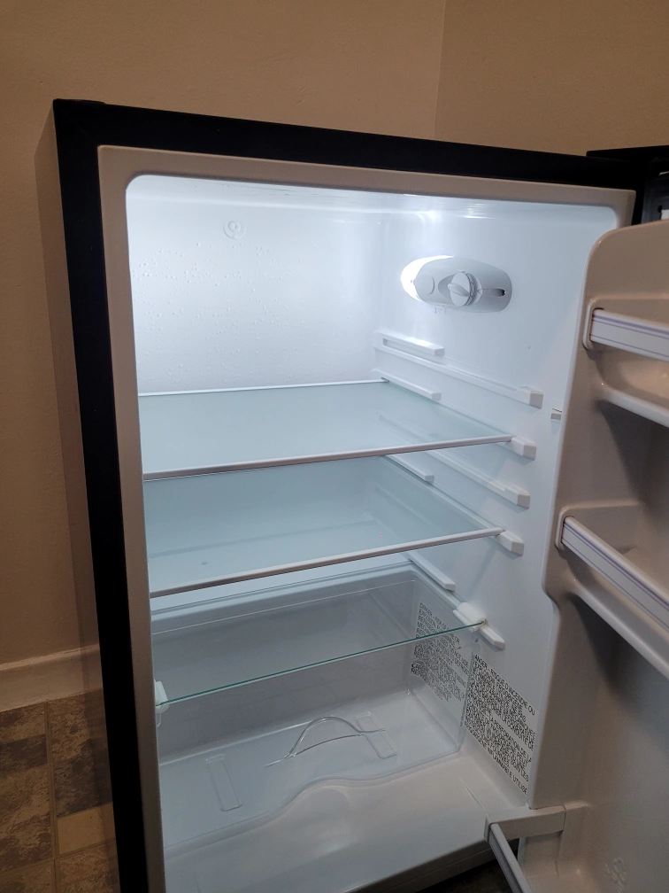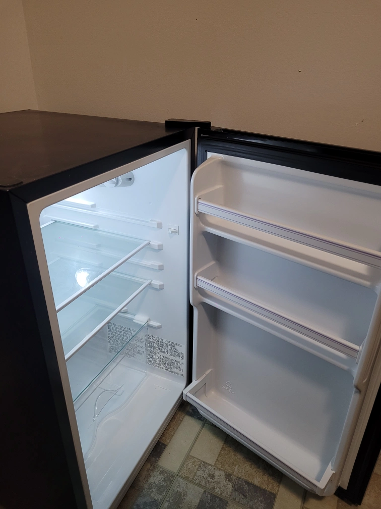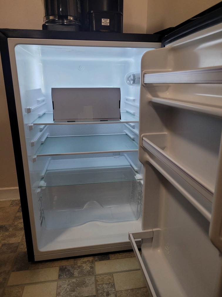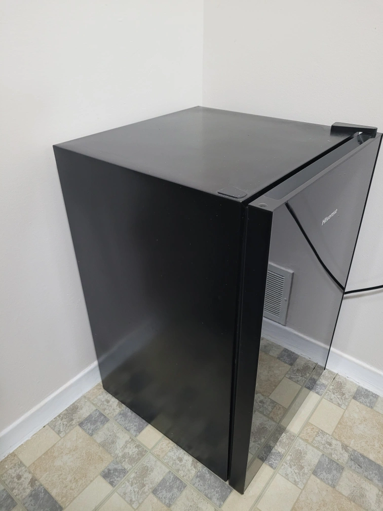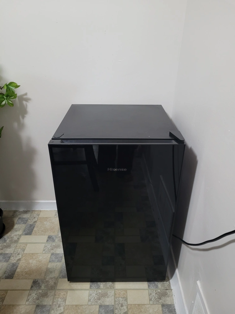 Selling a Hisense compact mini fridge in black. It's in great condition and perfect for a small space, dorm room, or office. The inside is clean and ready to go!