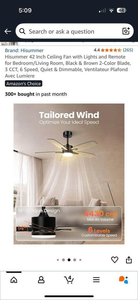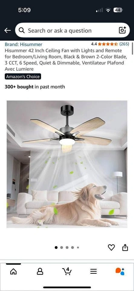 Brand new Hisummer 42” ceiling fan with light and remote. Features 6 speeds, 3 color temperatures, reversible airflow for year-round comfort, and quiet motor. Black & brown reversible blades. Pick up in Mahogany SE