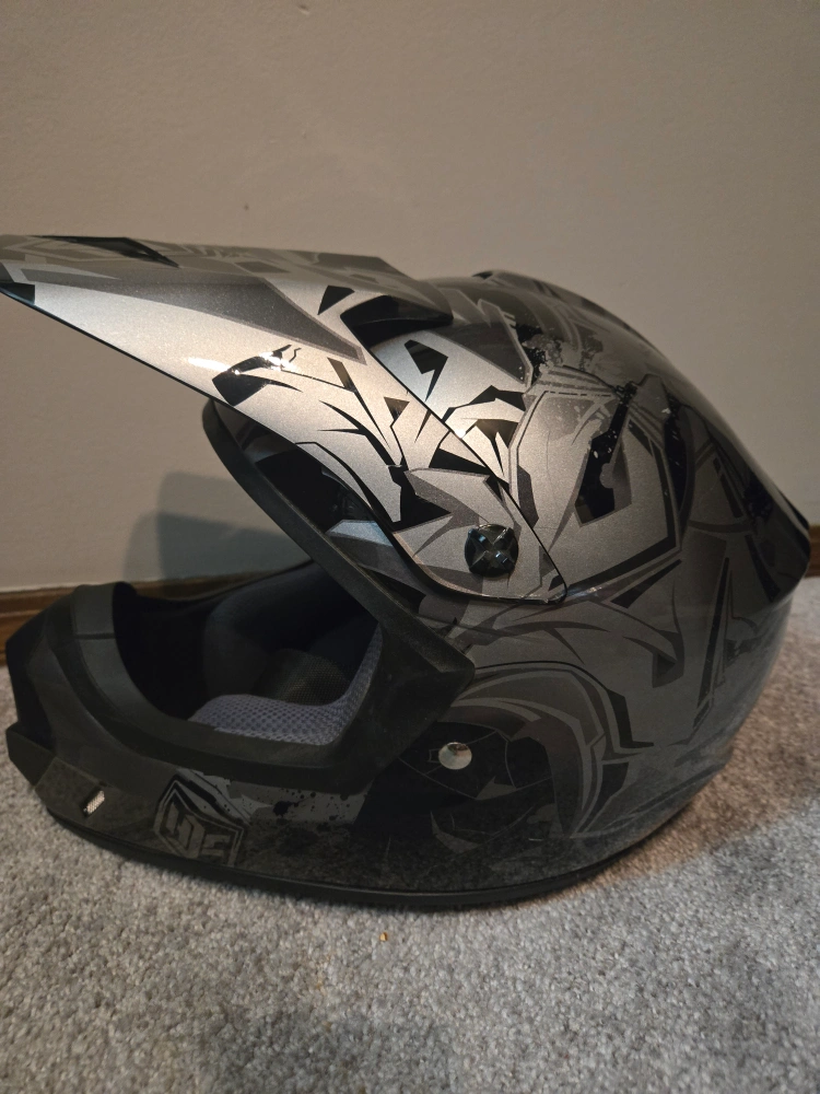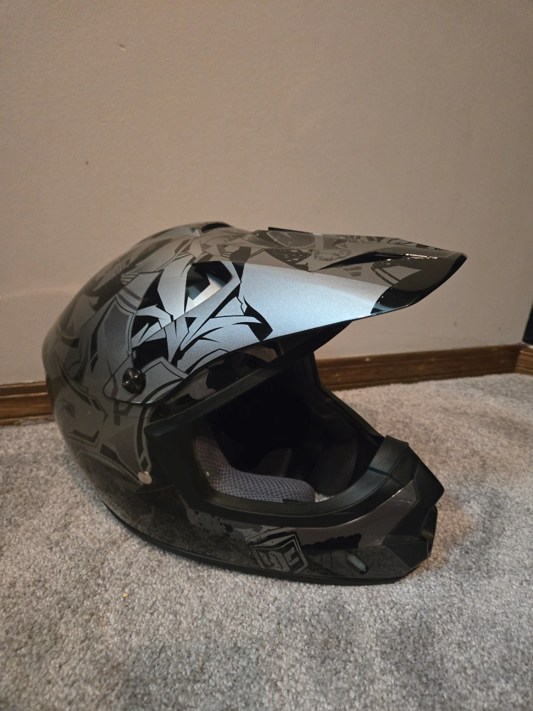 Selling a motocross helmet. It's in great shape and ready for the trails! The size is 6 7/8 - 7 inch, which is equivalent to 55-56 cm.