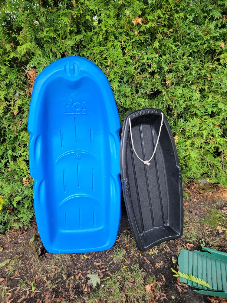 Selling 2 sleds, blue HO! sled and a black Torpedo sled. Both are in good condition and ready for some winter fun! $10 for both.