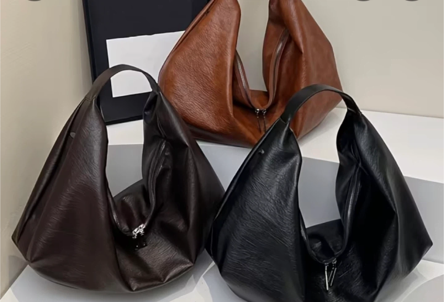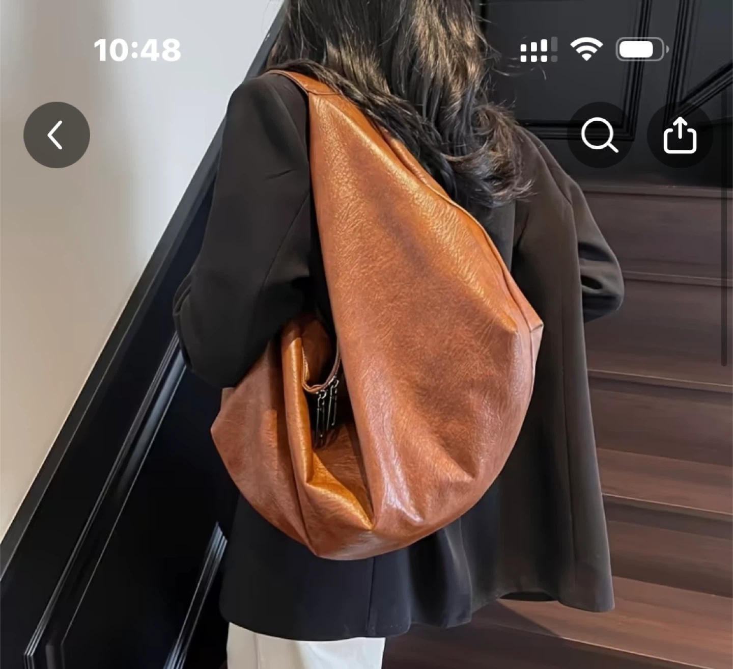 Selling a stylish leather hobo bag. It's a great everyday bag and is very versatile. The bag is brown and has a unique shape. It's in great condition and ready for a new home