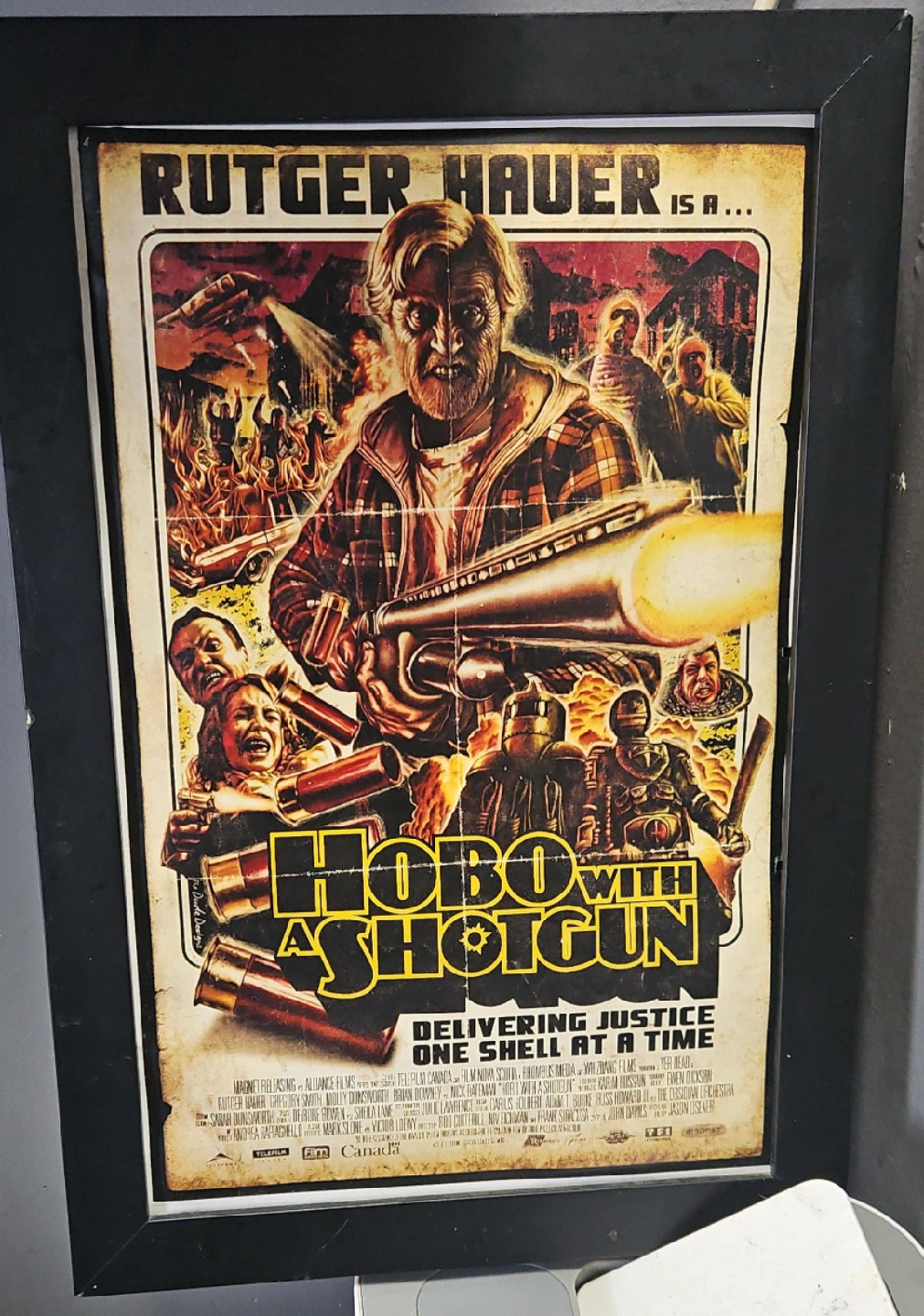 Selling a framed movie poster for Hobo With a Shotgun.
