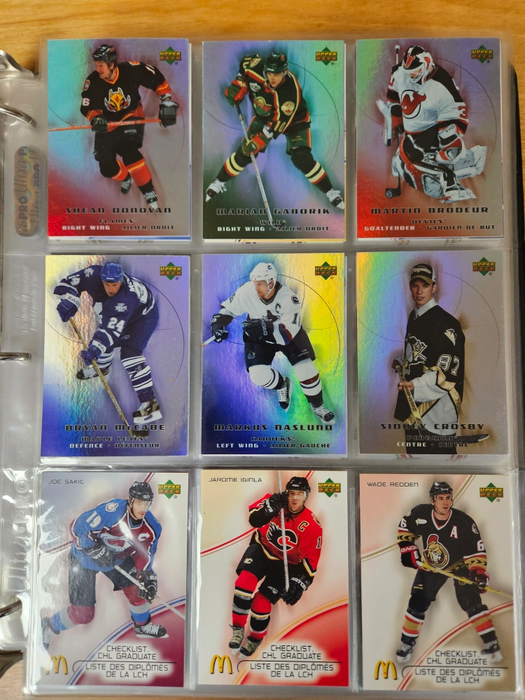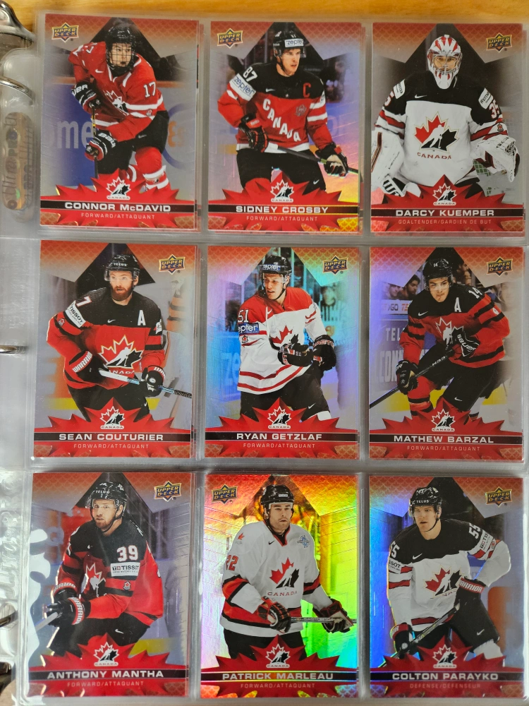 Large collection comprised of several base sets as well as 4,000+ assorted cards of many brands from all years between 1989/90 - 2023-2024. Cards are in Ultra Pro sleeves and binders. Almost all cards in excellent condition. Complete sets include: 2005/06 Upper Deck series 1 base set 2006/07 SP Authentic base set 2007/08 Victory base set 2021/22 MVP base set 2021/22 Tim Horton's Team Canada base set + Captain's and Championship Medals sets All McDonald's base sets from 2003/04 - 2009/10