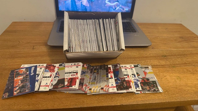 Dive into hockey history with this collection of Upper Deck hockey cards! These cards showcase a range of players and teams, perfect for any hockey enthusiast looking to expand their collection. Please note that these cards are in used condition. While I can't guarantee you'll find a Gretzky rookie card, there's definitely treasure to be found in this lot. If the ad's up, the cards are available, ready to join your collection!