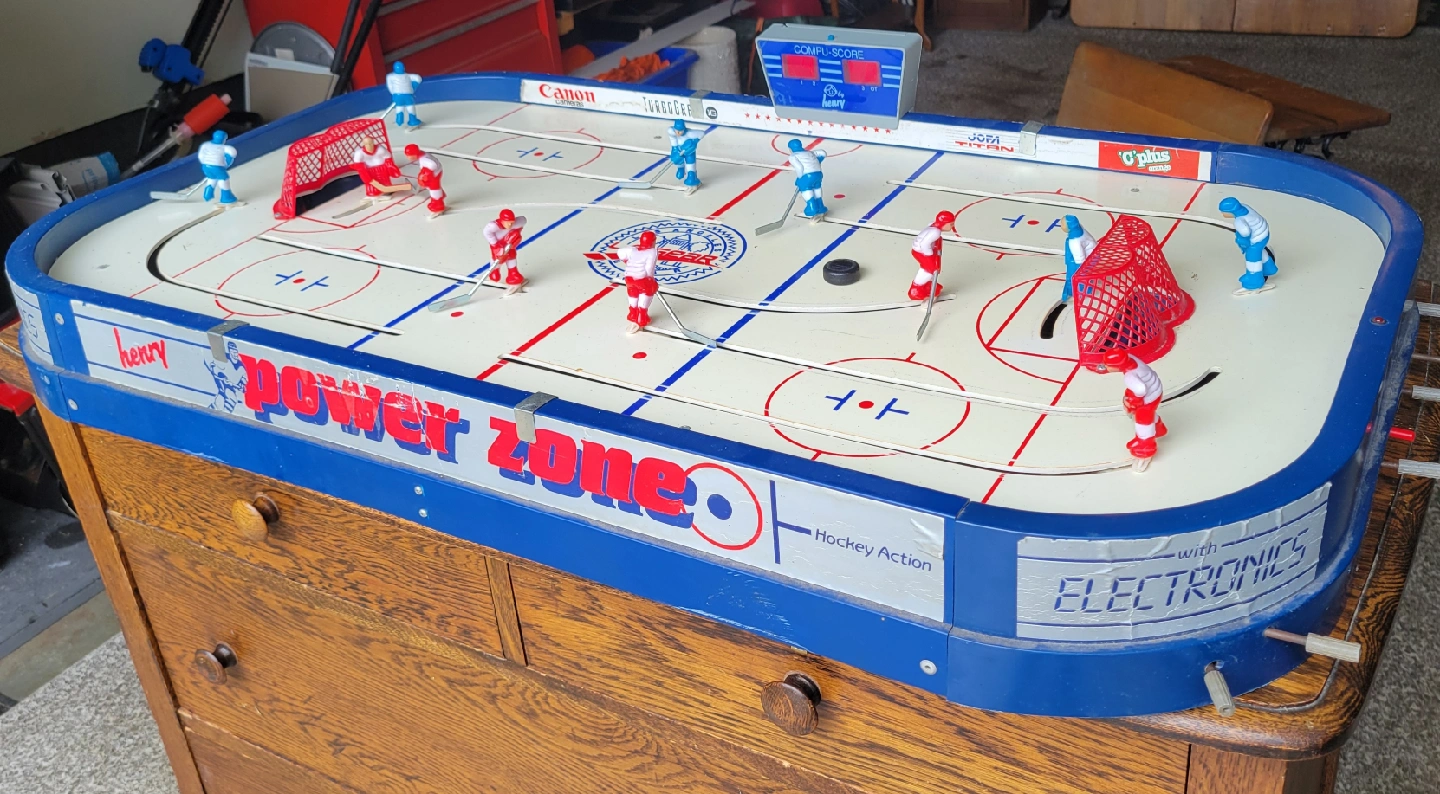 A beautiful complete hockey game. Mint condition, electronic score board. This is a beauty. Located in Elora.