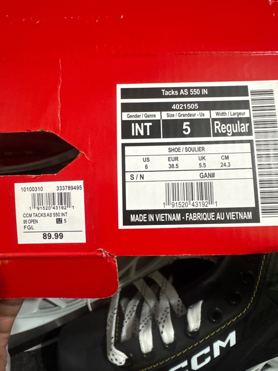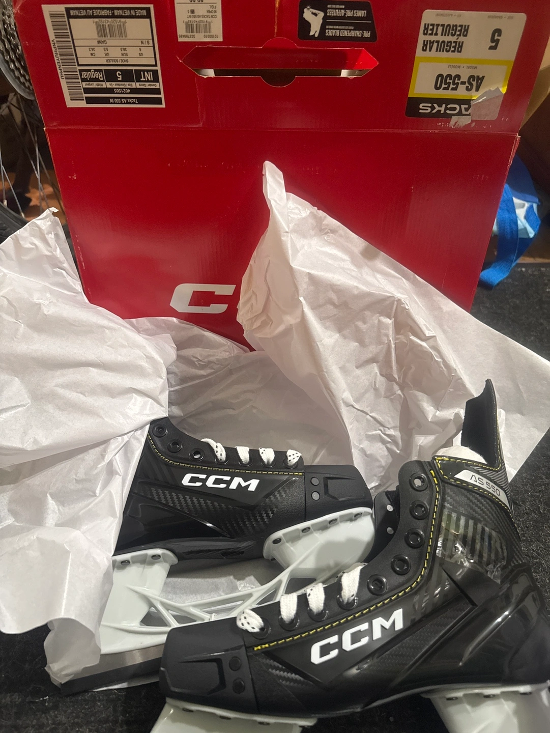 NEW CCM Tracks AS-550 hockey skates, size 5, regular width. Pre-sharpened blades. Pick up NE Marlborough See my other ads
