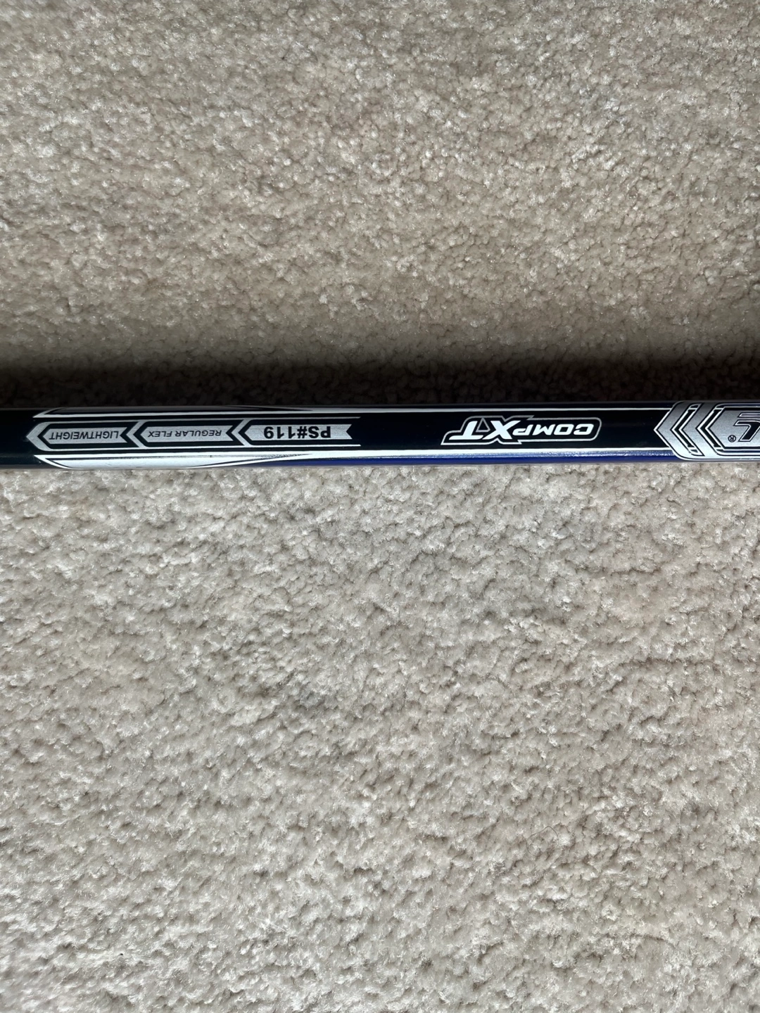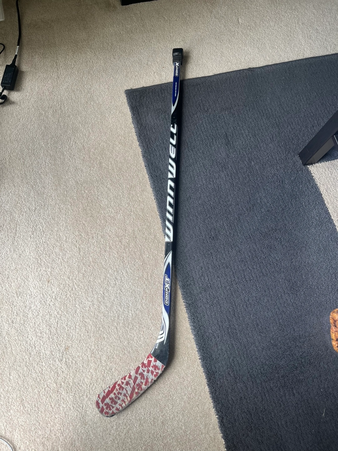 Selling a Winnwell CompXT hockey stick, model. It features a lightweight design with some older tape wrapped around it from years ago. It was rarely used but came in handy for the winter.