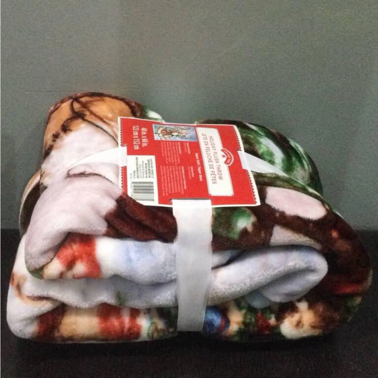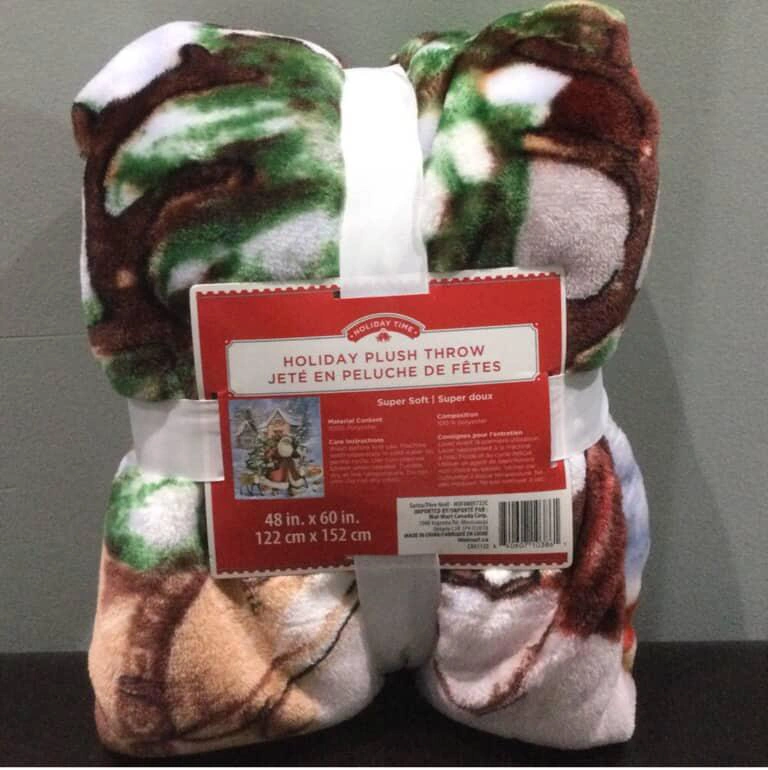 Snuggle up with this Holiday Time plush throw! It measures 48 inches by 60 inches (122 cm x 152 cm). It's super soft and perfect for those cozy nights in