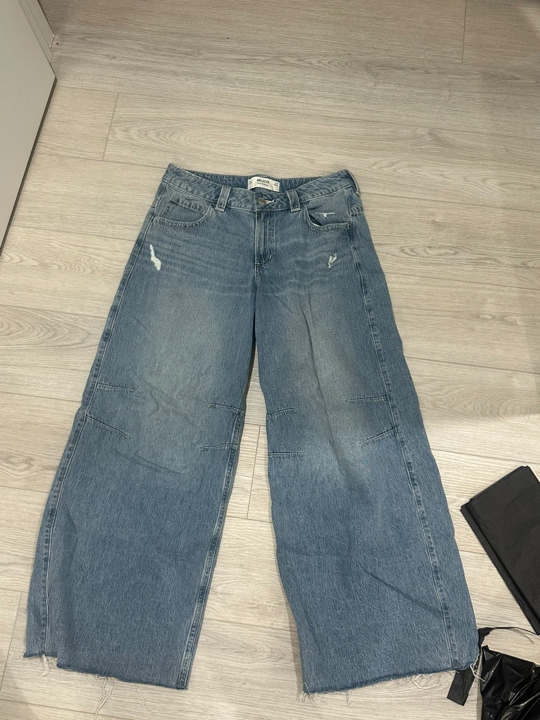 Hollister Extreme Baggy Jeans in size W29. These jeans are a light wash denim and have a relaxed, comfortable fit. Perfect for a casual, trendy look!
