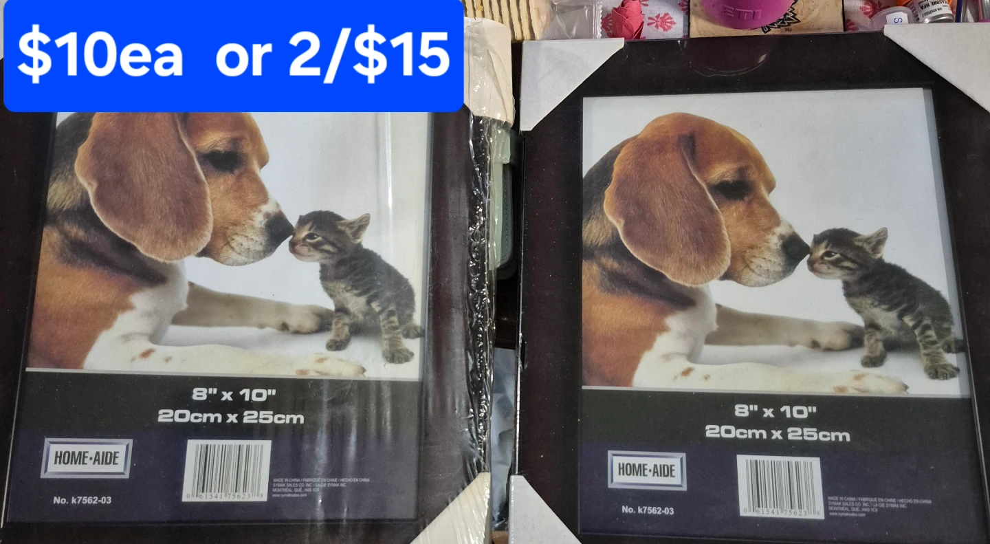 still in wrapper Set of picture frames. Various sizes available. Black and silver finishes. Ornate and simple styles. Perfect for displaying photos. More that aren't shown.
