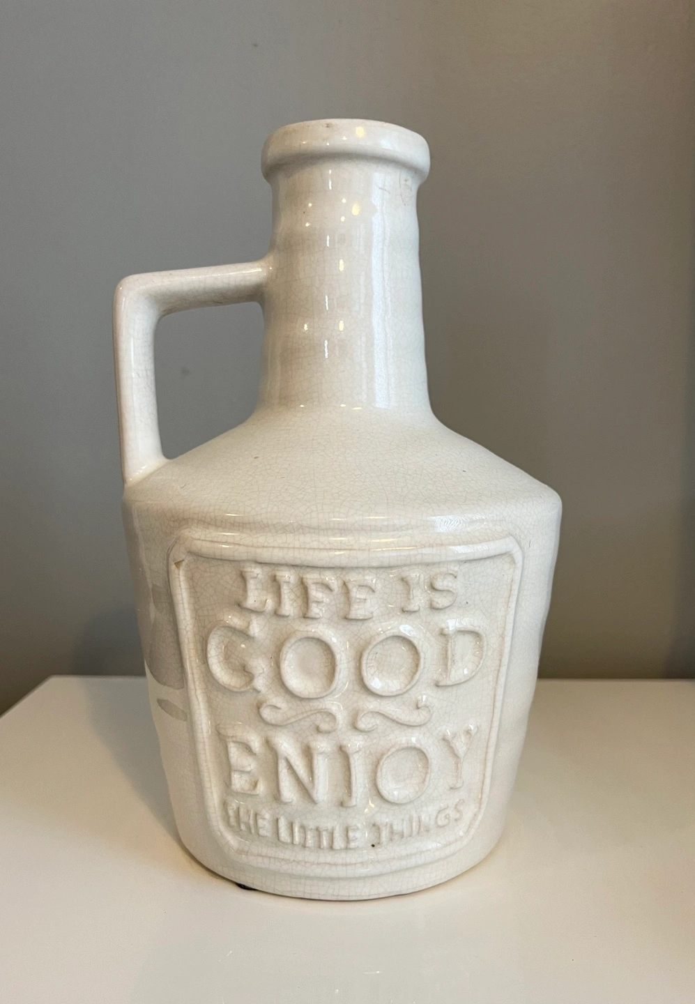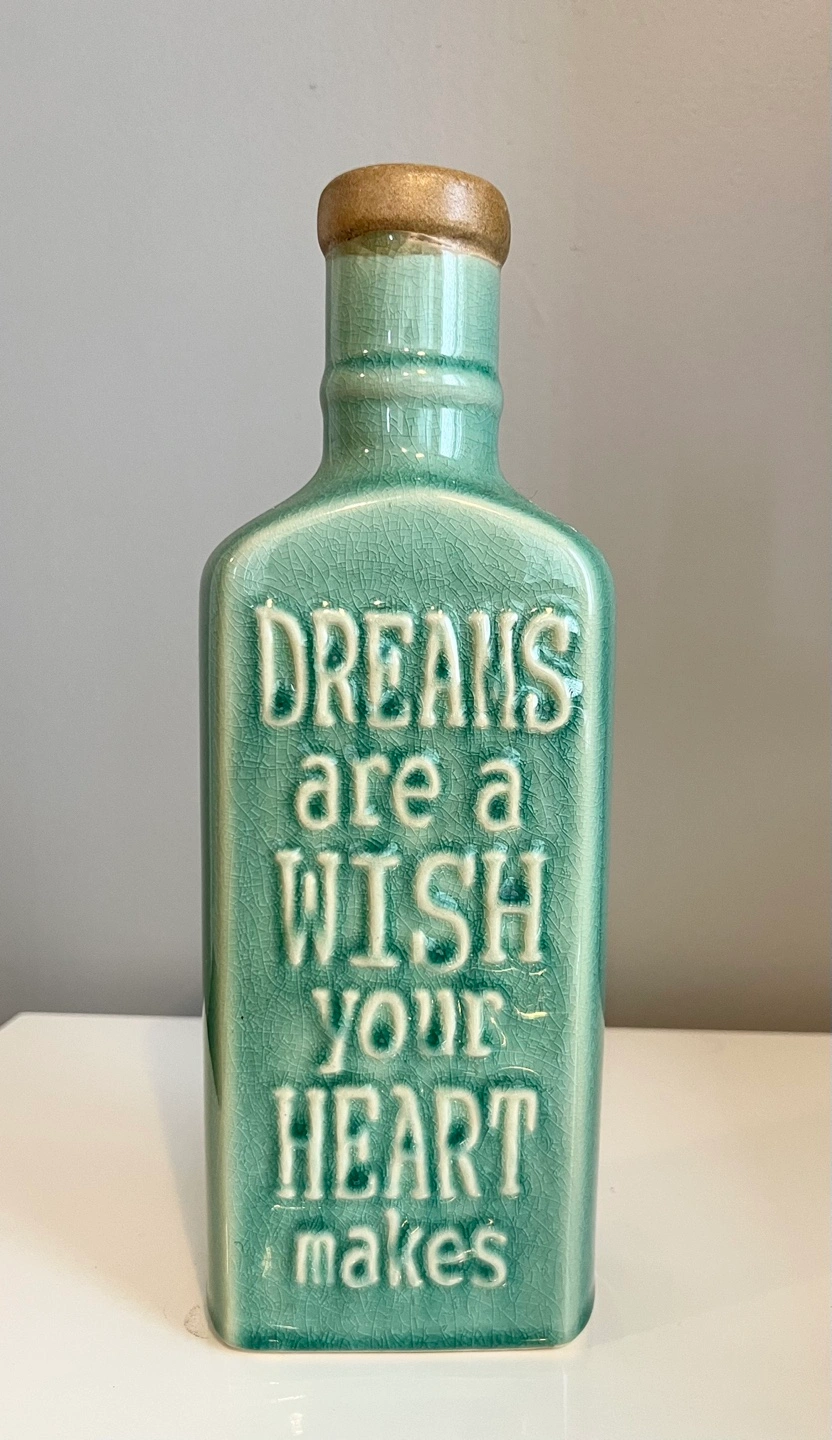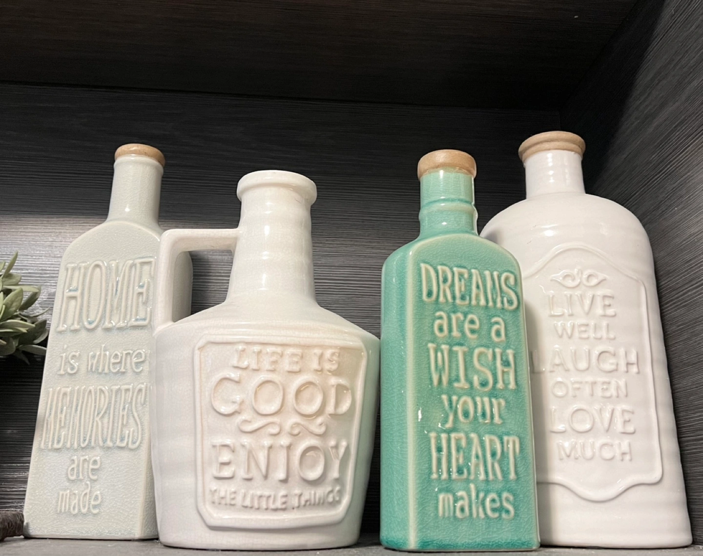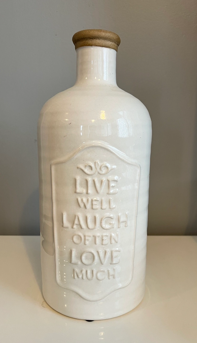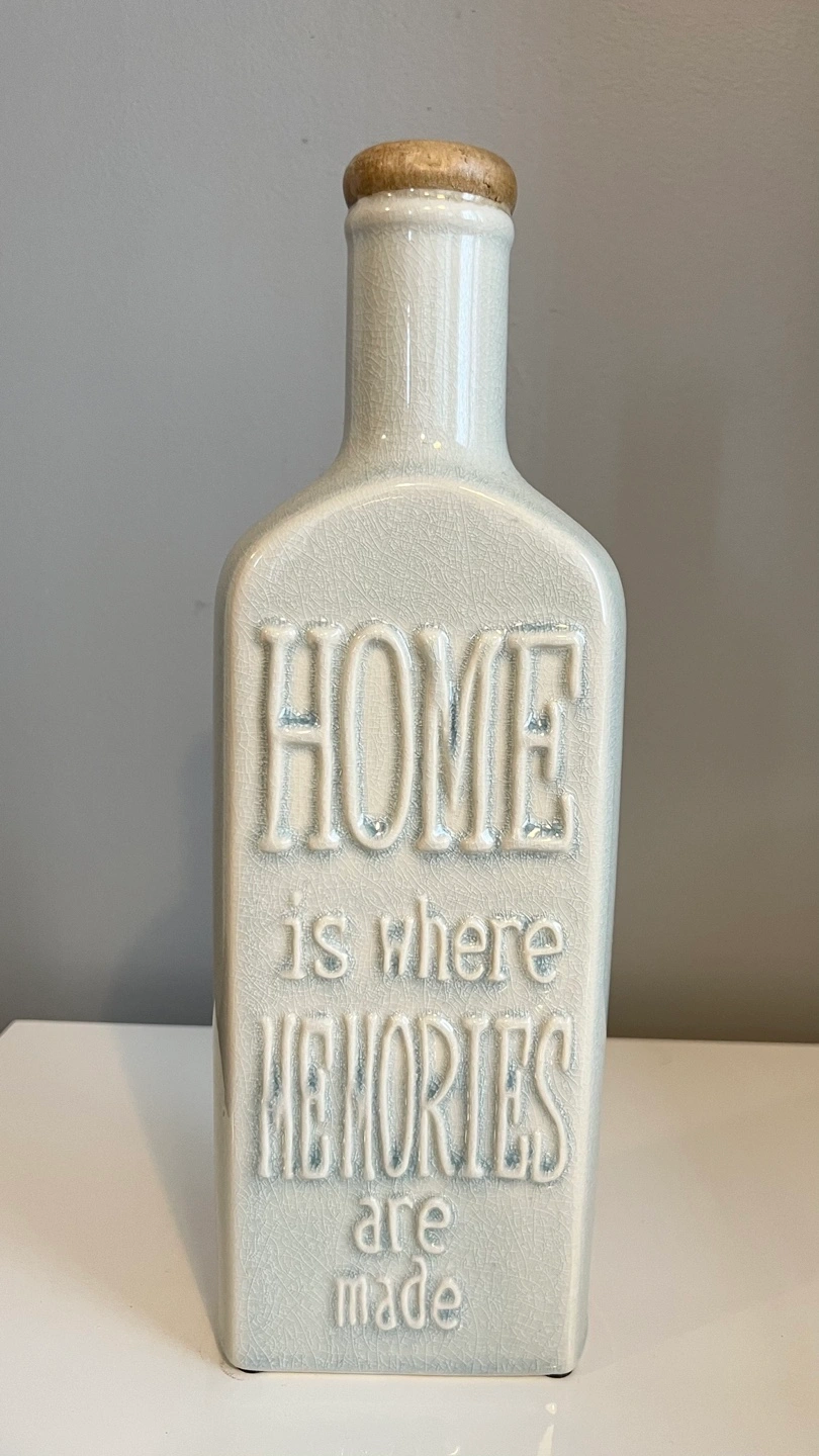 Four ceramic bottles, various colours and sayings. Perfect for home decor. Bottles feature inspirational quotes. Unique design and rustic look. Heights: 33cm, 31cm, 27cm, 26.5cm Condition: Brand New Sold separately $20 each
