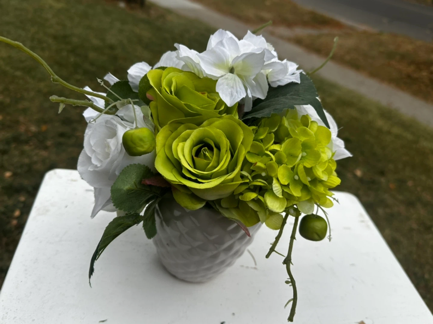 Selling a variety of home decor items! I have a decorative silver pomegranate, several different floral arrangements, and a small decorative tree. They are all in great condition and ready to brighten up your space
