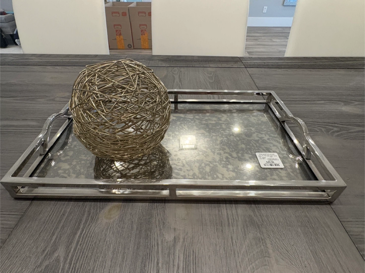 A collection of home decor items to add some flair to your space! There are vases with decorative flowers, gold spheres, and trays available. They are in great condition and ready to find a new home! $10 each Check out my other ads for home decor PICTURE 1-pending sold