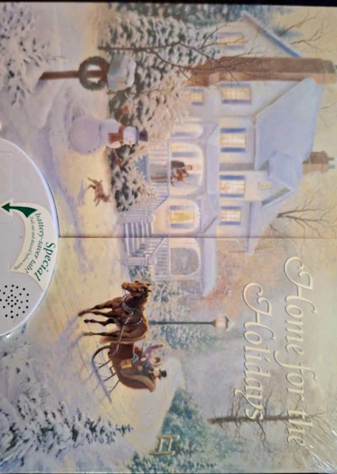 Christmas Musical Advent Calendar with Song Book. “Home for the Holidays” musical advent calendar. 25 different Christmas songs each with pull out cardboard ornament. Comes with song book that goes with the advent calendar which includes the 25 numbered songs lyrics. You can hang the little ornaments on a tree. 3 working batteries included and tested. Product is sealed and brand new except where I needed to pull the battery tab out to test the sound. (I used my opened one that I'm keeping to take the inside pictures. Originally sold by Avon in 1999. Pick up near Cedar Drive and Prairie avenue. Cash only. Specific address will not be released until pick up time has been finalized.