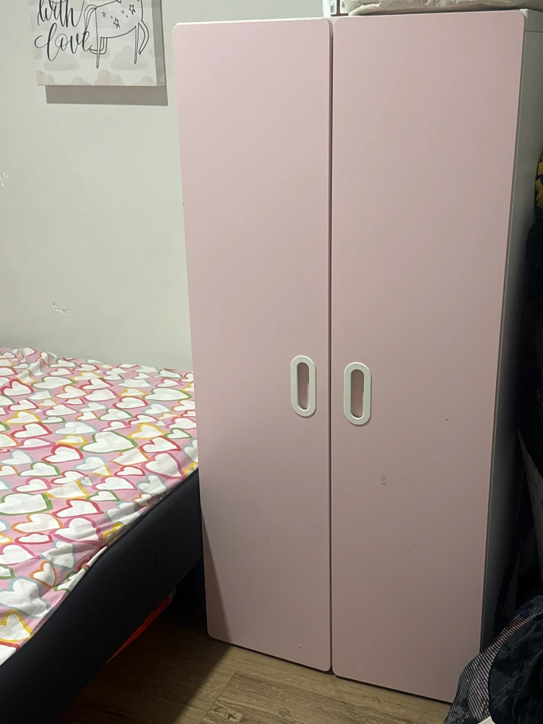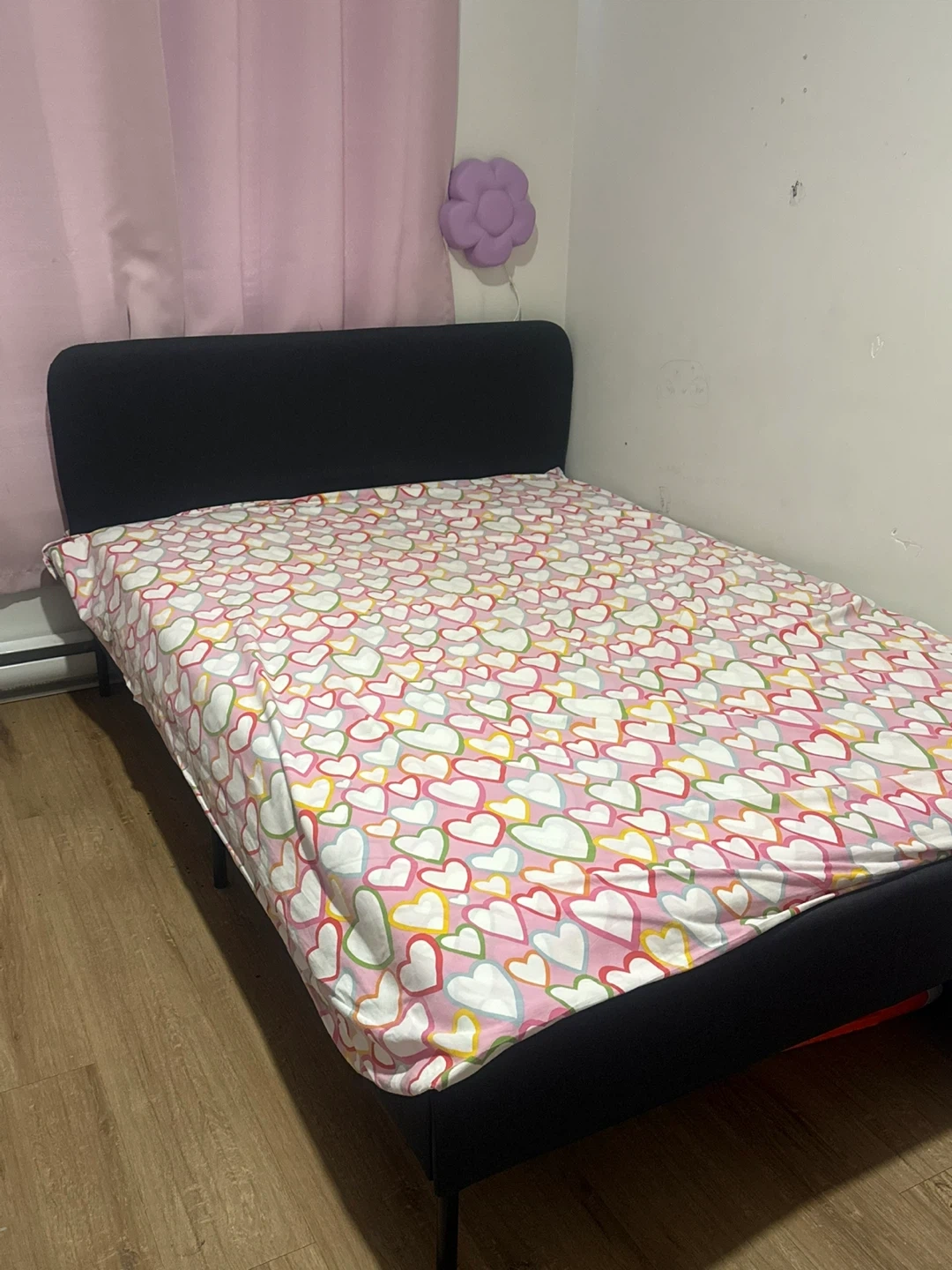 Selling a collection of bedroom furniture! King size grey bed frame and mattress. Costway portable air conditioner, full bed frames in black, and a cute pink wardrobe. Perfect to furnish a new space or upgrade your current setup!