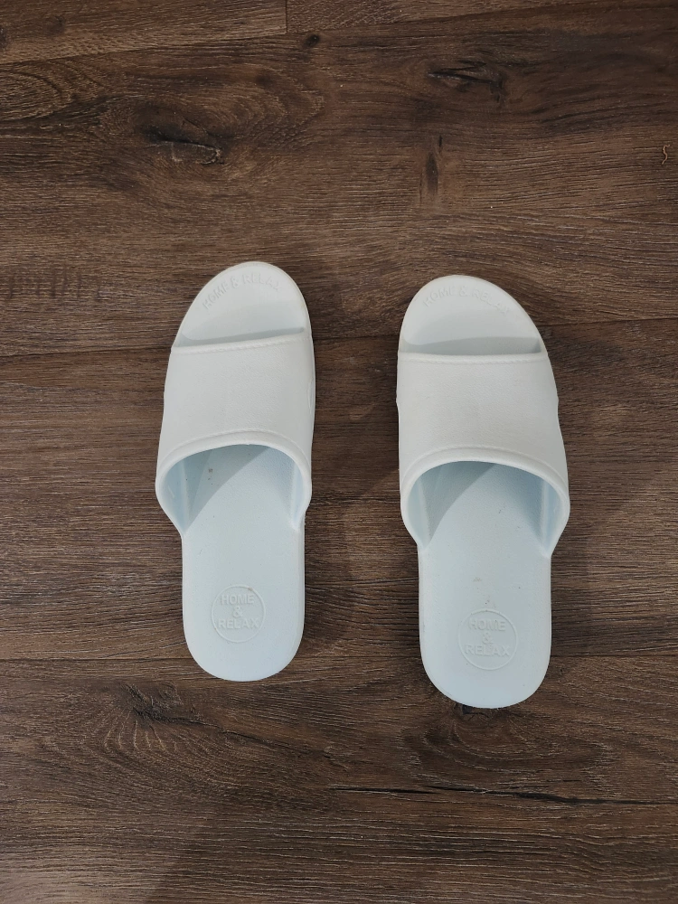 Lightly used pair of mint green slides. Comfortable and easy to wear. Perfect for indoor use. Good condition.