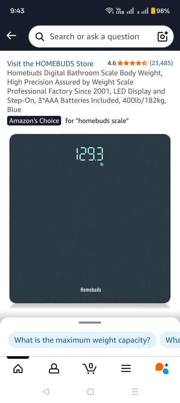Selling a Homebuds HB905 bathroom scale in excellent condition! It's a digital scale that provides a high precision weight scale. It features an LED display and step-on technology. It supports up to 400lb/182kg and uses 3*AAA batteries. Comes with the original box!