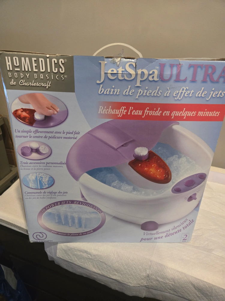 Get ready to pamper your feet with this Homedics JetSpa Ultra foot spa! It features 10 power jets, three personalized accessories (massage rollers, brush, and pumice stone), and warms cold water in minutes. Get a virtually silent and total relaxation experience!