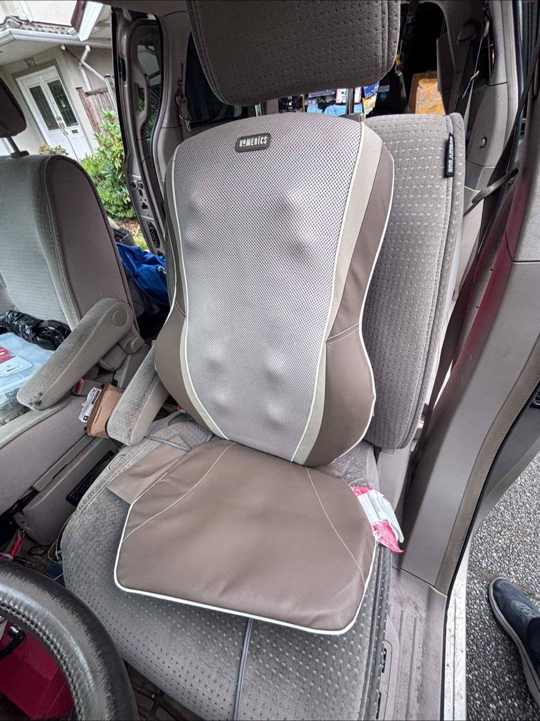 Selling a HoMedics massage seat cushion! It's in great shape and ready to help you relax on the go or at home. Perfect for anyone who spends a lot of time driving or sitting at a desk. It's easy to install and use, just plug it in and enjoy a soothing massage