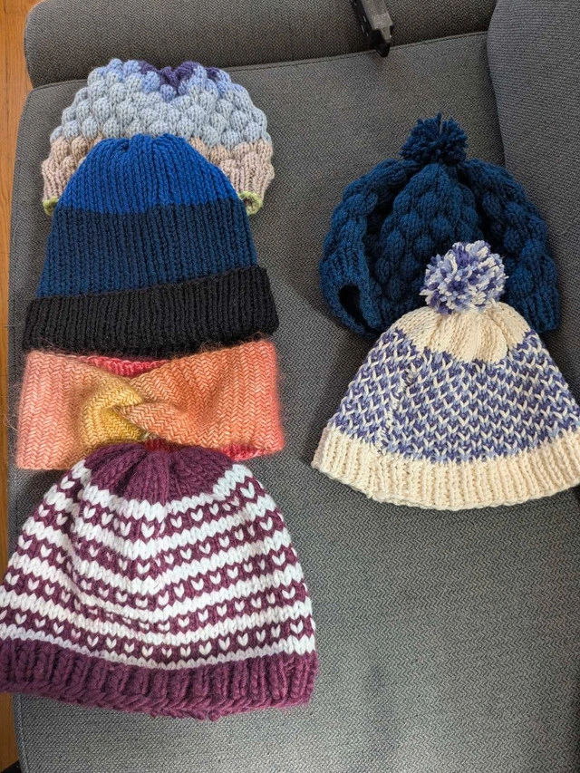 I am a knitter and have a plethora of knit beanies laying around! $20 for the adult sized on the left, $15 for the child sized on the right. For Sale By: Owner
