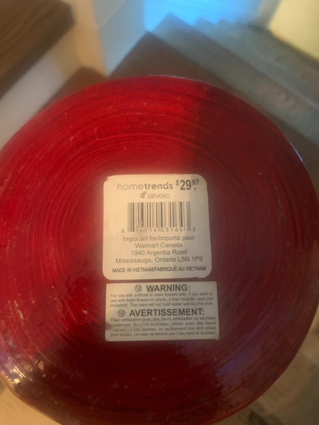 Selling a lovely red vase from hometrends. It's perfect for artificial or dried flowers. The vase is in great condition and originally retailed for $29.97